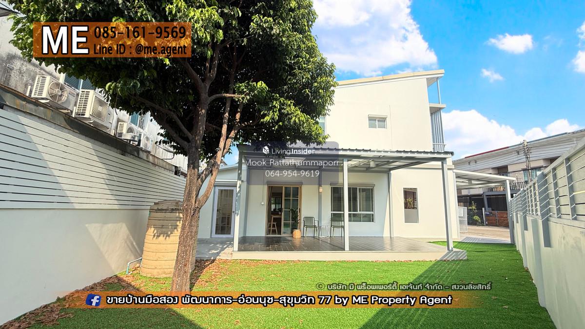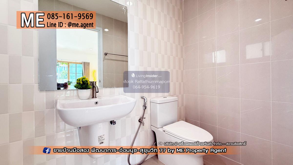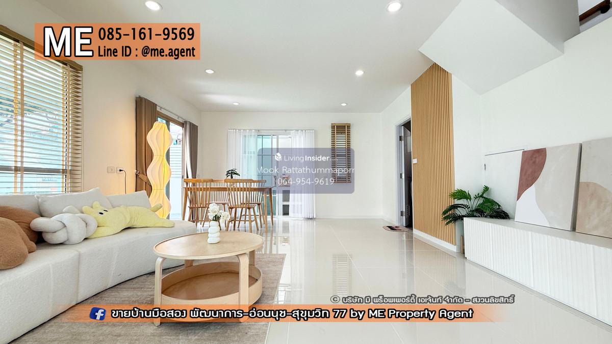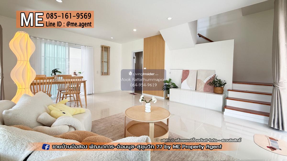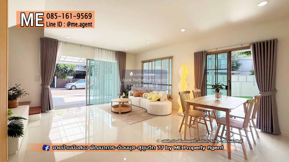 จองด่วน! บ้านหลังมุม รีโนเวทใหม่ วิลเลตไลท์ พัฒนาการ 38 อบอุ่น สนามหญ้ากว้าง ใกล้เอกมัย-ทองหล่อ-สุขุมวิท โทร คลิกเพื่อดูเบอร์โทรติดต่อ (TF55-41) . ทำเลใจกลางเมือง ออกได้ 3 เส้นทางหลัก พัฒนาการ - อ่อนนุช – ศรีนครินทร์ ใกล้ BTS สถานีอ่อนนุช และ Airport Link สถานีหัวหมาก . -ขนาดเนื้อที่ 40.9 ตร.วา. พื้นที่ใช้สอย 140 ตร.ม -3 ห้องนอน 2 ห้องน้ำ - 2 ที่จอดรถ -ฟรี! เฟอร์นิเจอร์ภายในบ้าน จุดเด่นบ้าน -รีโนเวทบ้านใหม่ทั้งหลัง -บ้านมุม พื้นที่ข้างกว้าง โปร่ง โล่ง เป็นส่วนตัว -มีสวน + ต้นไม้ใหญ่ ฟีลได้อยู่บ้านพักตากอากาศ -แสงเข้าทุกมุม บ้านสว่างทั้งวัน -ห้องนั่งเล่นโทนอบอุ่น มินิมอล น่าอยู่มาก -จอดรถหน้าบ้าน + มีพื้นที่ใช้ชีวิตจริงครบ . ราคา 5.6 ล้านบาท . สนใจติดต่อเราได้ที่ ME Property Agent โทร คลิกเพื่อดูเบอร์โทรติดต่อ K.มุก (TH/ENG/JP) LINE : @me.agent IG : mepropertyagent TIKTOK : meagent YouTube : @meagent5131 ติดตามชมบ้านสวยๆ ได้ในเพจ ME ทัก Inbox FB : ขายบ้านมือสอง พัฒนาการ-อ่อนนุช-สุขุมวิท 77 by ME Property Agent . ส่วนกลาง – สระว่ายน้ำขนาด 15 x 5 เมตร – ฟิตเนส / คลับเฮ้าส์ – รปภ.และ CCTV 24 ชม. . สถานที่ใกล้เคียง 1. มหาวิทยาลัยเกษมบัณฑิต – 1.2 กม. 2. โรงพยาบาลวิภาราม – 3.5 กม. 3. ธัญญะ พาร์ค – 4.0 กม. 4. Airport Link หัวหมาก – 3.5 กม. 5. BTS อ่อนนุช – 5.5 กม. 6. Big C Extra อ่อนนุช – 5.0 กม. 7. Tesco Lotus อ่อนนุช – 5.5 กม. 8. ซีคอนสแควร์ – 7.5 กม. 9. พาราไดซ์ พาร์ค – 8.3 กม. . สถานีใกล้เคียง -MRT รถไฟฟ้าสายสีเหลือง - สถานีคลองกลันตัน ( ≈ 1.6 กม.) -MRT รถไฟฟ้าสายสีเหลือง - สถานีศรีนุช ( ≈ 2.1 กม.) -MRT รถไฟฟ้าสายสีเหลือง - สถานีหัวหมาก ( ≈ 2.2 กม.) -Airport Link แอร์พอร์ตลิ้งค์ - หัวหมาก ( ≈ 2.7 กม.) -MRT รถไฟฟ้าสายสีเหลือง - สถานีศรีนครินทร์ 38 ( ≈ 3.1 กม.) -BTS BTS สายสุขุมวิท - อ่อนนุช ( ≈ 3.3 กม.) . #MEpropertyagent #ONEStopService #บ้านมือสอง #บ้านพัฒนาการ #บ้านอ่อนนุช #บ้านพร้อมอยู่ #ทาวน์เฮ้าส์อ่อนนุช #ทาวน์เฮ้าส์พัฒนาการ #พร้อมอยู่ #บ้านใหม่ใกล้ฉัน #พัฒนาการ38 #รีโนเวทใหม่ #ใกล้รถไฟฟ้าอ่อนนุช #วิลเลตไลท์ #VilletteLite #ทาวน์เฮ้าส์2ชั้น
