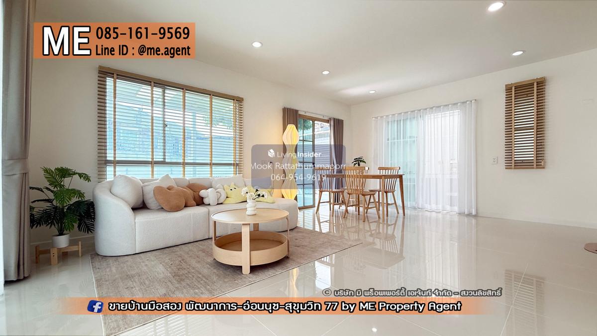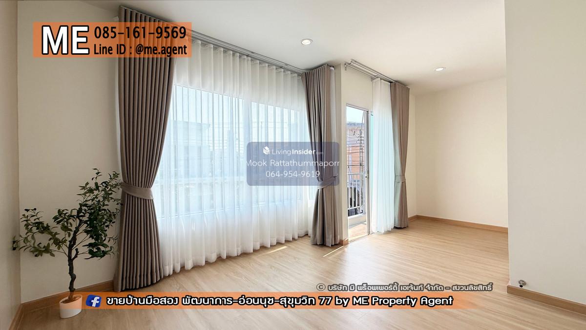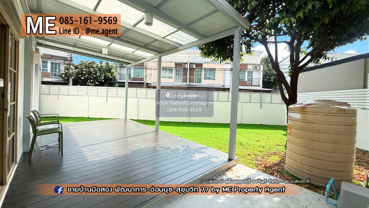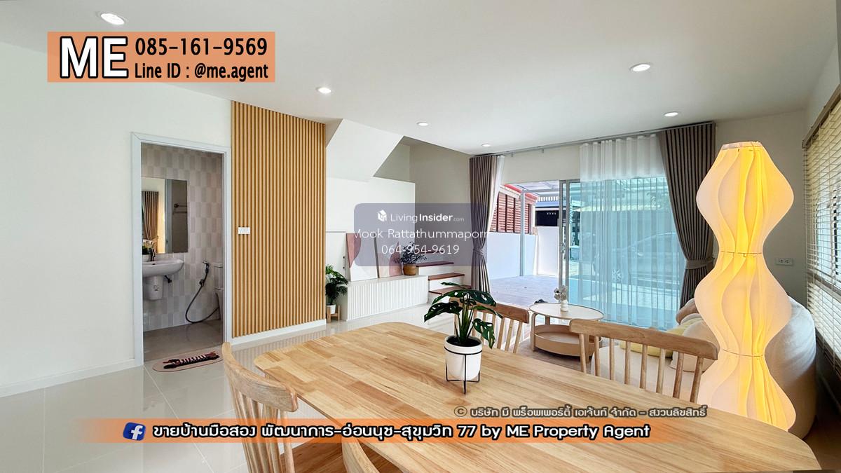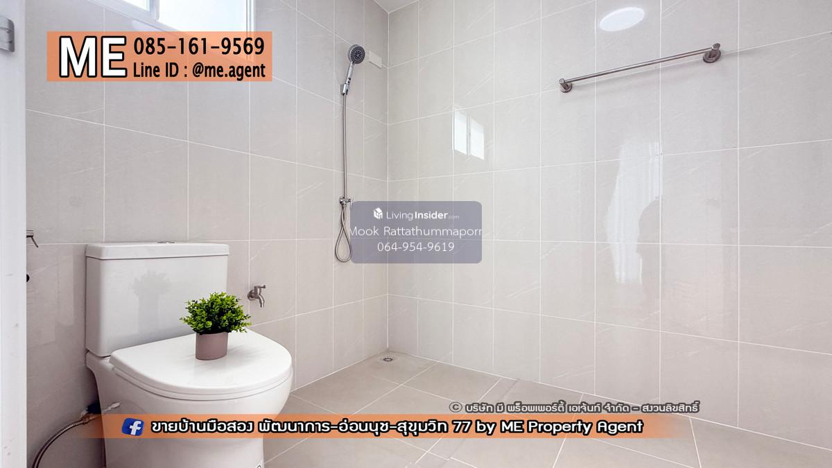 จองด่วน! บ้านหลังมุม รีโนเวทใหม่ วิลเลตไลท์ พัฒนาการ 38 อบอุ่น สนามหญ้ากว้าง ใกล้เอกมัย-ทองหล่อ-สุขุมวิท โทร คลิกเพื่อดูเบอร์โทรติดต่อ (TF55-41) . ทำเลใจกลางเมือง ออกได้ 3 เส้นทางหลัก พัฒนาการ - อ่อนนุช – ศรีนครินทร์ ใกล้ BTS สถานีอ่อนนุช และ Airport Link สถานีหัวหมาก . -ขนาดเนื้อที่ 40.9 ตร.วา. พื้นที่ใช้สอย 140 ตร.ม -3 ห้องนอน 2 ห้องน้ำ - 2 ที่จอดรถ -ฟรี! เฟอร์นิเจอร์ภายในบ้าน จุดเด่นบ้าน -รีโนเวทบ้านใหม่ทั้งหลัง -บ้านมุม พื้นที่ข้างกว้าง โปร่ง โล่ง เป็นส่วนตัว -มีสวน + ต้นไม้ใหญ่ ฟีลได้อยู่บ้านพักตากอากาศ -แสงเข้าทุกมุม บ้านสว่างทั้งวัน -ห้องนั่งเล่นโทนอบอุ่น มินิมอล น่าอยู่มาก -จอดรถหน้าบ้าน + มีพื้นที่ใช้ชีวิตจริงครบ . ราคา 5.6 ล้านบาท . สนใจติดต่อเราได้ที่ ME Property Agent โทร คลิกเพื่อดูเบอร์โทรติดต่อ K.มุก (TH/ENG/JP) LINE : @me.agent IG : mepropertyagent TIKTOK : meagent YouTube : @meagent5131 ติดตามชมบ้านสวยๆ ได้ในเพจ ME ทัก Inbox FB : ขายบ้านมือสอง พัฒนาการ-อ่อนนุช-สุขุมวิท 77 by ME Property Agent . ส่วนกลาง – สระว่ายน้ำขนาด 15 x 5 เมตร – ฟิตเนส / คลับเฮ้าส์ – รปภ.และ CCTV 24 ชม. . สถานที่ใกล้เคียง 1. มหาวิทยาลัยเกษมบัณฑิต – 1.2 กม. 2. โรงพยาบาลวิภาราม – 3.5 กม. 3. ธัญญะ พาร์ค – 4.0 กม. 4. Airport Link หัวหมาก – 3.5 กม. 5. BTS อ่อนนุช – 5.5 กม. 6. Big C Extra อ่อนนุช – 5.0 กม. 7. Tesco Lotus อ่อนนุช – 5.5 กม. 8. ซีคอนสแควร์ – 7.5 กม. 9. พาราไดซ์ พาร์ค – 8.3 กม. . สถานีใกล้เคียง -MRT รถไฟฟ้าสายสีเหลือง - สถานีคลองกลันตัน ( ≈ 1.6 กม.) -MRT รถไฟฟ้าสายสีเหลือง - สถานีศรีนุช ( ≈ 2.1 กม.) -MRT รถไฟฟ้าสายสีเหลือง - สถานีหัวหมาก ( ≈ 2.2 กม.) -Airport Link แอร์พอร์ตลิ้งค์ - หัวหมาก ( ≈ 2.7 กม.) -MRT รถไฟฟ้าสายสีเหลือง - สถานีศรีนครินทร์ 38 ( ≈ 3.1 กม.) -BTS BTS สายสุขุมวิท - อ่อนนุช ( ≈ 3.3 กม.) . #MEpropertyagent #ONEStopService #บ้านมือสอง #บ้านพัฒนาการ #บ้านอ่อนนุช #บ้านพร้อมอยู่ #ทาวน์เฮ้าส์อ่อนนุช #ทาวน์เฮ้าส์พัฒนาการ #พร้อมอยู่ #บ้านใหม่ใกล้ฉัน #พัฒนาการ38 #รีโนเวทใหม่ #ใกล้รถไฟฟ้าอ่อนนุช #วิลเลตไลท์ #VilletteLite #ทาวน์เฮ้าส์2ชั้น