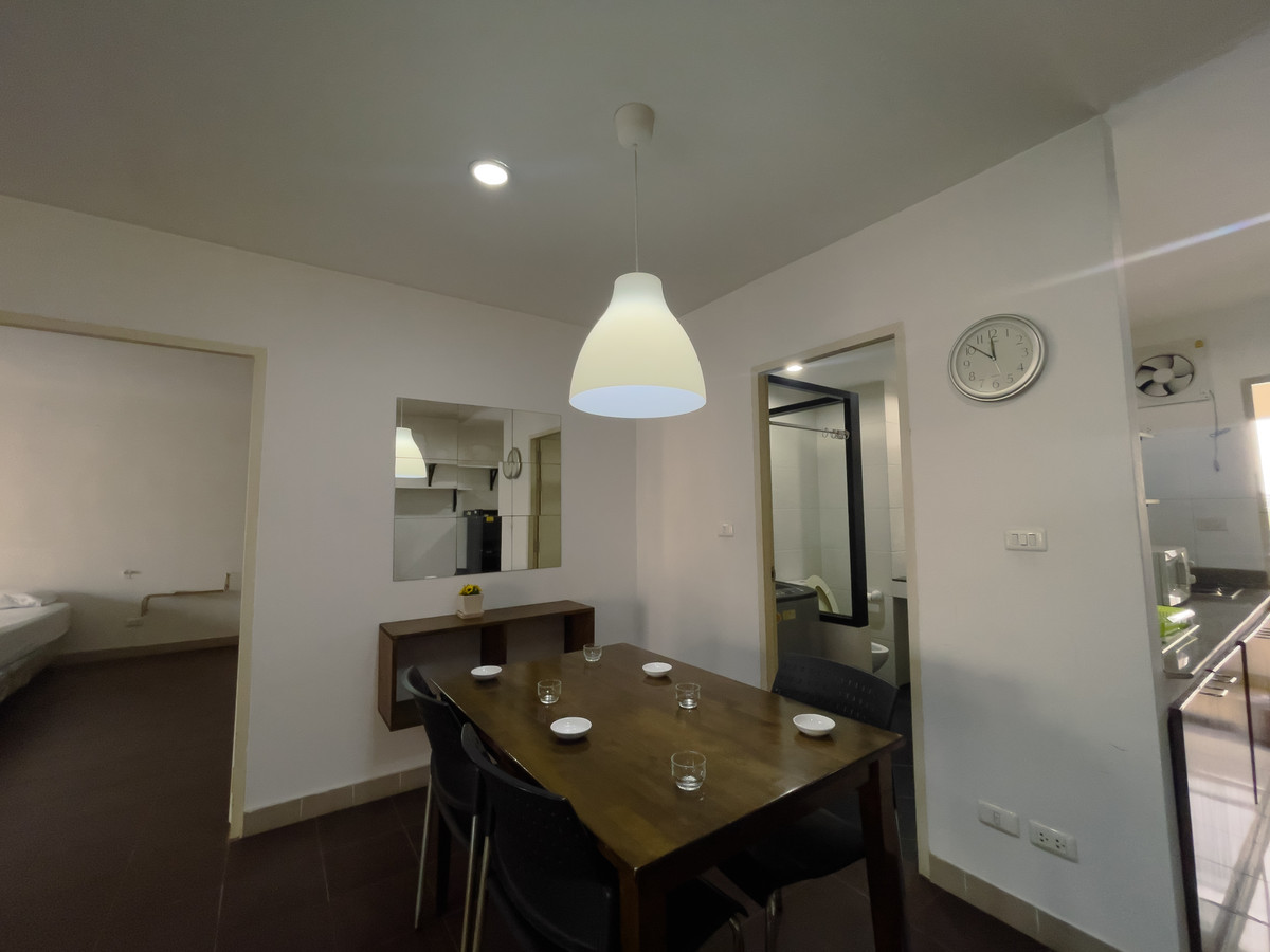 ห้องพักแบบ 1 ห้องนอน 1 ห้องรับแขก 2 ห้องน้ำ 2 ระเบียง ในพื้นที่ขนาด 80 ตร.ม. ตั้งอยู่ในทองหล่อซอย 20 จุดเด่น - พื้นที่ 80 ตร.ม. เหมาะสำหรับทั้งการพักผ่อนและทำงาน - เฟอร์นิเจอร์ครบครัน พร้อมเครื่องใช้ไฟฟ้า (ยกเว้นเครื่องซักผ้าครับ) - ไม่ห่างจากถนนใหญ่มาก ภายในซอยสงบ สภาพแวดล้อมดี ร่มรื่น ปลอดภัย - อากาศภายในอาคารถ่ายเทสะดวก - วิวโล่งไม่มีตึกบัง สิ่งอำนวยความสะดวก - เตียงคิงไซส์ - โซฟา - ทีวี - Wi-Fi ฟรี - เครื่องปรับอากาศ - ห้องน้ำส่วนตัวพร้อมฝักบัว และอ่างอาบน้ำ - ไมโครเวฟ - ตู้เสื้อผ้า - ตู้เย็น - ระเบียง - อ่างล้างจาน - เครื่องทำน้ำอุ่น - โต๊ะทานข้าว - เก้าอี้ - ผ้าห่ม - ผ้าปูเตียง - ชั้นวางของ - บริการทำความสะอาด - บริการซักผ้าปูเตียงและผ้าห่มทุกเดือน - ชุดครัวทำอาหาร สิ่งอำนวยความสะดวกเพิ่มเติม - กล้องวงจรปิด - เจ้าหน้าที่รักษาความปลอดภัย - ลิฟต์ - สระว่ายน้ำ - ลานจอดรถ - บริการทำความสะอาด - บริการซักรีด - บริการเครื่องซักผ้าสำหรับผู้เข้าพัก - เลี้ยงสัตว์ได้ (ตามเงื่อนไขที่กำหนด) สถานที่ใกล้เคียง ร้านสะดวกซื้อ และ community mall - เซเว่น อีเลฟเว่น (เดิน 3 นาที) - ฟู้ดแลนด์ (800 เมตร) - เจ อเวนิว (1 กิโลเมตร) - เดอะ คอมม่อน ทองหล่อ (1 กิโลเมตร) โรงพยาบาล - โรงพยาบาลคามิลเลียน (500 เมตร) - โรงพยาบาลเพชรเวช (1.4 กิโลเมตร) - โรงพยาบาลสมิติเวช (1.8 กิโลเมตร) - โรงพยาบาลกรุงเทพ (2 กิโลเมตร) ร้านอาหาร - หน่องริมคลอง (เดิน 3 นาที) - ชีสเค้กเฮาส์ (เดิน 3 นาที) - คิงคอง บุฟเฟ่ต์ (เดิน 5-8 นาที) สามารถติดต่อสอบถามข้อมูลเพิ่ม หรือต้องการนัดวันเพื่อดูห้องพัก ตามช่องทางติดต่อด้านล่าง คลิกเพื่อดูเบอร์โทรติดต่อ (โท) คลิกเพื่อดูเบอร์โทรติดต่อ