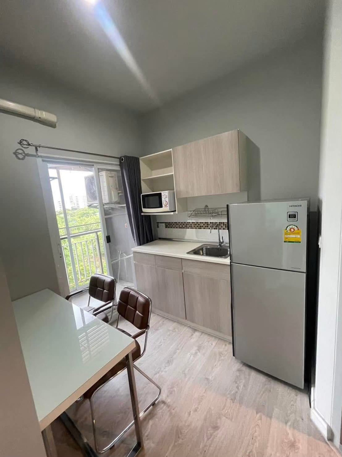 1 ห้องนอน 1 ห้องน้ำ 1 ห้องนั่งเล่น (ระเบียงอยู่ฝั่งทิศตะวันออก) ทำให้รับแดดในช่วงเช้าห้องไม่ร้อน พื้นที่ใช้สอย 30.43 ตรม. ฝ้าเพดานสูง 2.75 เมตร เฟอร์นิเจอร์ -เตียง+ที่นอน 5 ฟุต -ผ้าม่านในห้องนอนและระเบียง -ตู้เสื้อผ้าบิ้วอิน -เคาน์เตอร์ครัวบิ้วอิน -โต๊ะรับประทานอาหาร -โซฟา+โต๊ะกลาง -ตู้เก็บของ ตู้เก็บรองเท้า -ราวตากผ้าติดผนัง เครื่องใช้ไฟฟ้า -TV -ไมโครเวฟ -ตู้เย็น -เครื่องปรับอากาศ 2 ตัว -เครื่องทำน้ำอุ่น -เครื่องซักผ้า สถานที่ใกล้เคียง : Makro ศาลายา : 850 ม. ตลาดศาลายา : 1.9 กม. Central ศาลายา : 5.3 กม รร.รัตนโกสินทร์สมโภช : 300 ม. ม.มหามกุฏฯ ศาลายา : 500 ม.