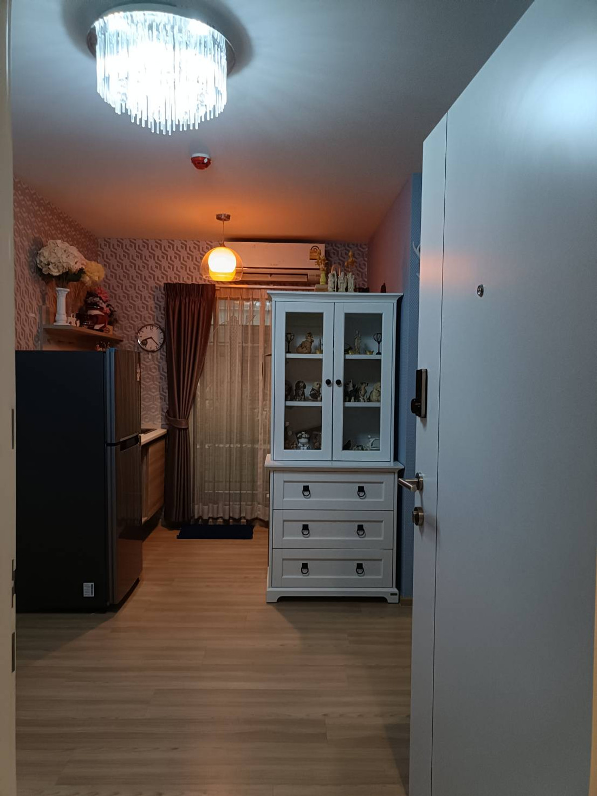 ห้องสวยน่าอยู่ เฟส1 ตึกB ชั้น 1 (26 ตร.ม.) ราคา 9,000/เดือน ตกแต่งครบ น่าอยู่ วิวสระว่ายน้ำ เฟอร์นิเจอร์ : เตียง ที่นอน ตู้เสื้อผ้า ตู้โชว์ โซฟา โต๊ะทานข้าว ประตูดิจิตอล เครื่องใช้ไฟฟ้า : แอร์ 2 เครื่