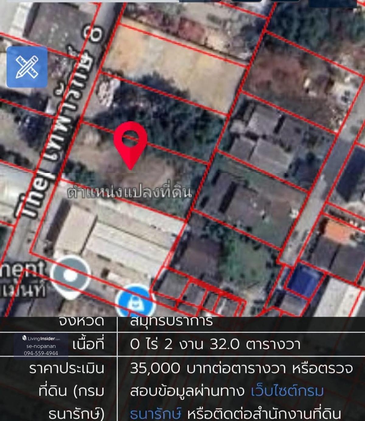 🚨 ด่วน! ที่ดินทำเลทอง ใกล้ BTS สำโรง แค่ 400 ม. 🚨 โอกาสแบบนี้มีไม่บ่อย รีบจองก่อนหลุด! 📍 ขนาด 2 งาน 32 ตร.ว 💰 ราคาเพียง 75,000/ตร.ว 📌 เข้า-ออกสะดวก ซอยเทพารักษ์ 8 แค่ 250 ม. ✅ ที่ถมแล้ว พร้อมสร้างทันท