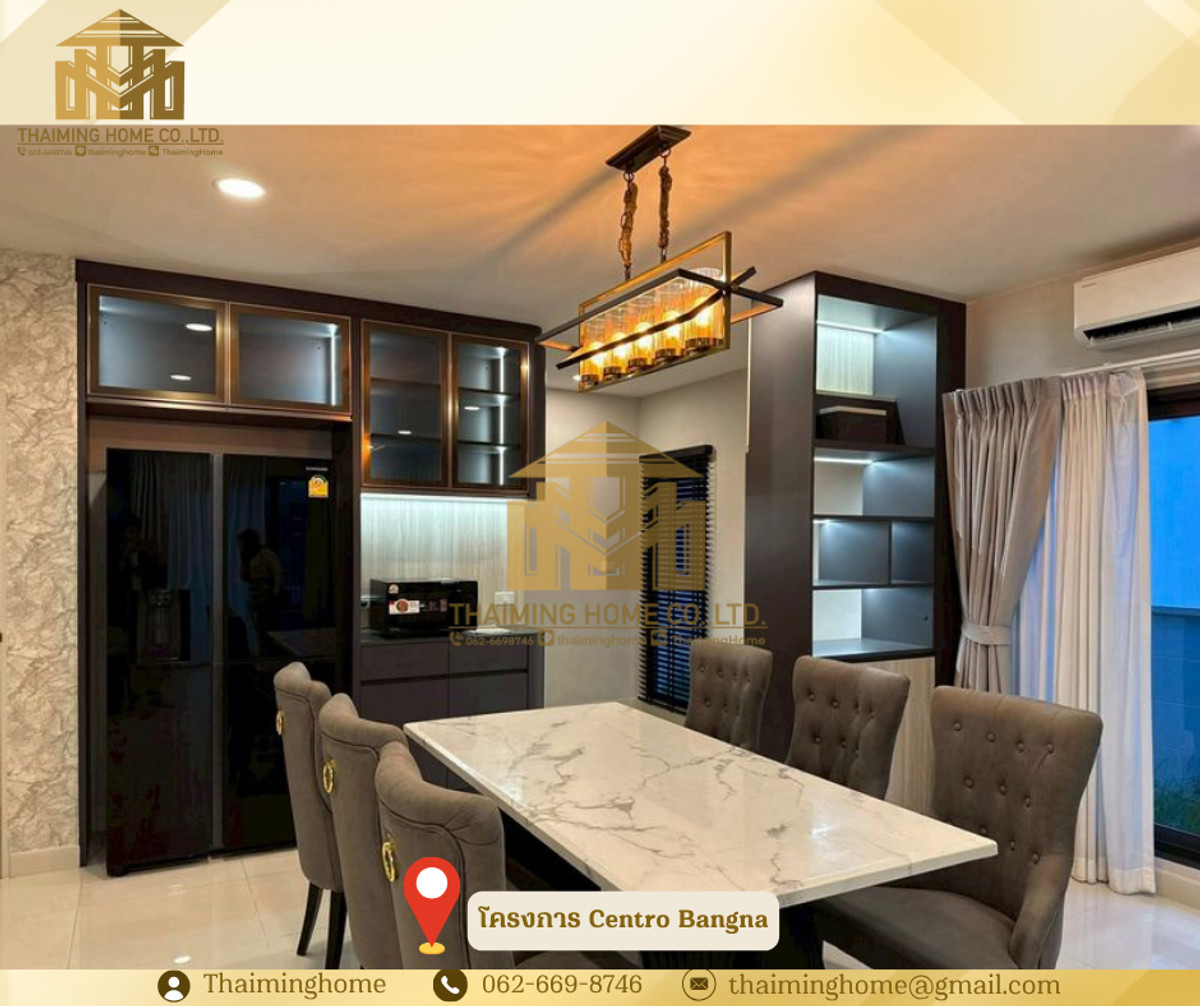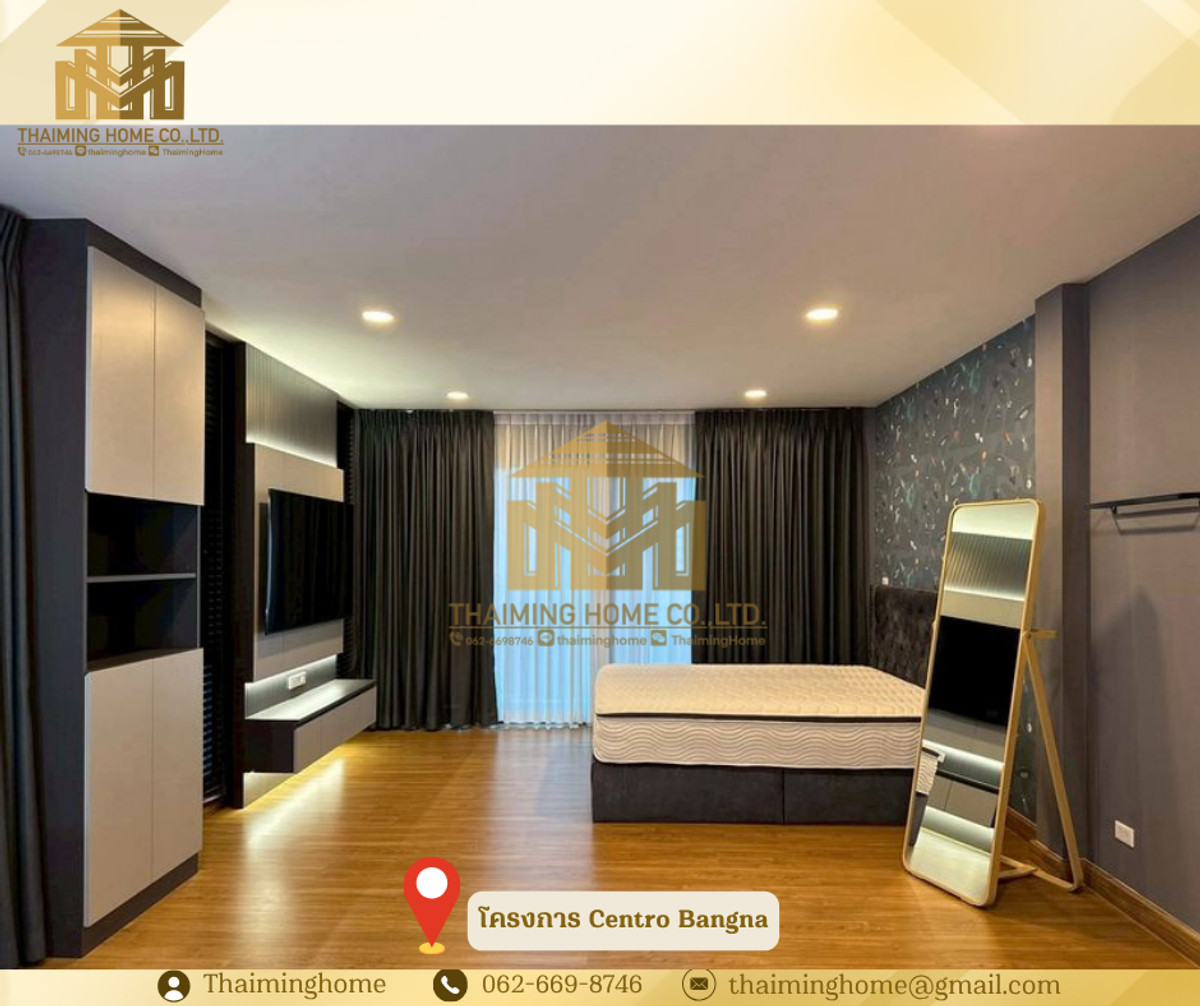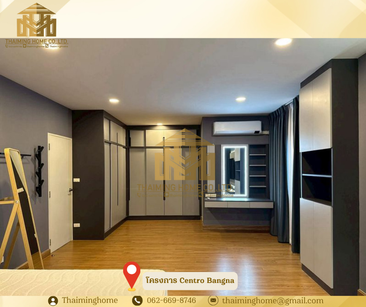 ขาย/ให้เช่า บ้านเดี่ยว Centro Bangna 3-4 ห้องนอน 4ห้องน้ำ (TH8-05226) รายละเอียด - จำนวนชั้น: 2 ชั้น - ขนาด: 61 ตารางวา - พื้นที่ใช้สอย : 209 ตรม. (Type Inizio) - จำนวนห้อง: 3 ห้องนอน + 1 ห้องนอน (อเนกประสงค์) 4 ห้องน้ำ 1 ห้องนั่งเล่น 1 ห้องครัว - ทิศบ้าน: ทิศเหนือ - จอดรถ: 2 คัน เฟอร์นิเจอร์ และเครื่องใช้ไฟฟ้า - ชั้นวางทีวีบิลต์อิน TV Samsung 75" และ Sound Bar - เครื่องปรับอากาศทุกห้อง 5 เครื่อง - โซฟา (ขนาด 3 เมตร) - โต๊ะอาหารและเก้าอี้ สำหรับ 6 ที่ - ตู้เก็บของ และเคาน์เตอร์บาร์ โซนรับประทานอาหาร - ตู้เย็น Samsung 2 ประตู 22Q + ทำน้ำแข็ง - ตู้ครัวและบิลต์อินเคาน์เตอร์ครัว เตา Induction และฮูดดูดควัน - เครื่องซักผ้า Samsung 12 kg. และเครื่องอบผ้า 10 kg. - กระจกกั้นห้องอาบน้ำ แบ่งโซนเปียก/แห้ง - เครื่องทำน้ำอุ่นทุกห้อง - บิลต์อินตู้เสื้อผ้าและโต๊ะเครื่องแป้งทั้ง 3 ห้องนอน - เตียงนอน 6 ฟุต สำหรับห้องนอน Master และขนาด 5 ฟุตสำหรับห้องนอน 2,3,4 - ชั้นวางทีวีบิลต์อิน TV Samsung 65" (ห้องนอน Master) - ชั้นวางทีวี TV Samaung 55" (ห้องนอน 2) - ประตูรั้วไฟฟ้า - มุ้งจีบทั้งหลัง สิ่งอำนวยความสะดวกในโครงการ - Clubhouse - ฟิตเนส - สระว่ายน้ำระบบเกลือขนาดใหญ่ - สระว่ายน้ำเด็ก - พื้นที่สวนสีเขียวขนาดใหญ่ กว่า 5 ไร่ - เจ้าหน้าที่รักษาความปลอดภัย 24 ชั่วโมง - ระบบ CCTV ทางเข้า-ออกโครงการ - ระบบ KATSAN สำหรับเข้า-ออกโครงการ - ระบบสัญญาณกันขโมยภายในบ้าน ระบบ Magnetic ทั้งหลัง สถานที่ใกล้เคียง - Mega บางนา - Ikea บางนา - ไทวัสดุ - Concordian International School - Singapore International School - รร.ราชวินิตบางแก้ว - รพ.จุฬารัตน์ - รพ.พริ๊นซ์ สุวรรณภูมิ เงื่อนไข - ราคาเช่า 88,000 บาท/เดือน - ราคาขาย 13,500,000 บาท ________________________ บริษัท ไทยหมิง โฮม จำกัด Thaiming Home Co.,Ltd. 泰明房园 房产公司 _________________________ Contact ติดต่อ : คลิกเพื่อดูเบอร์โทรติดต่อ Contact : คลิกเพื่อดูเบอร์โทรติดต่อ คุณหมิง Line ID: thaiminghome Line ID: @thaiminghome https://lin.ee/PkkHwYv Wechat : ThaimingHome E-mail : คลิกเพื่อดูอีเมล _________________________