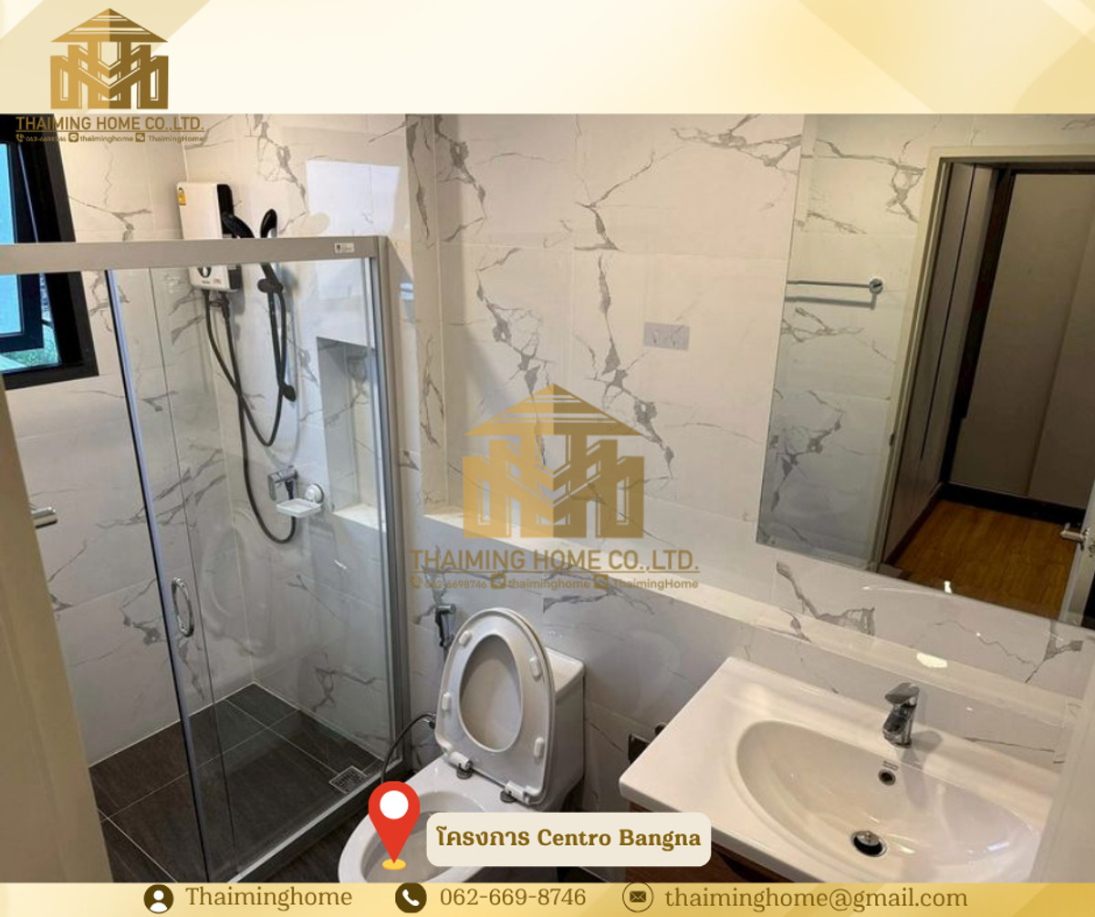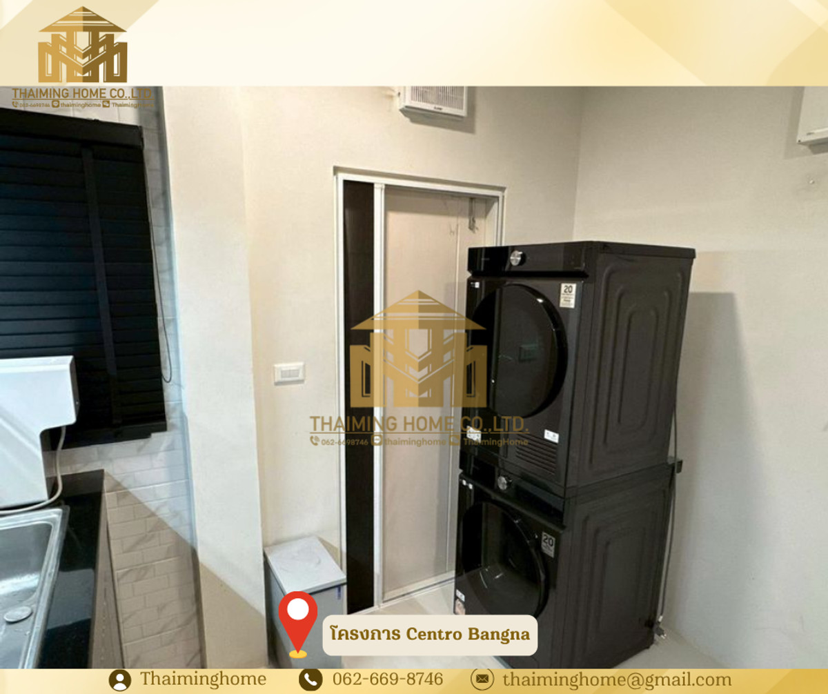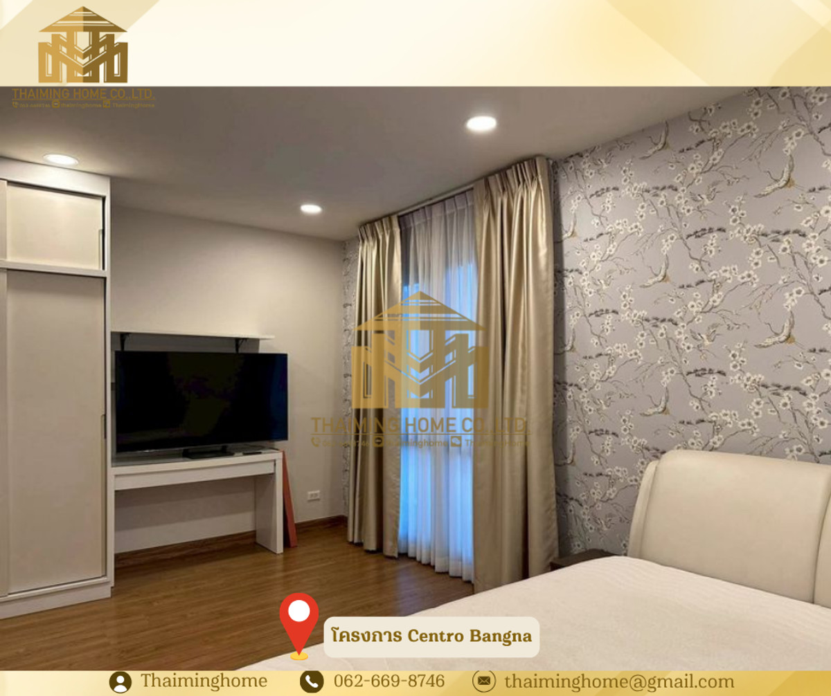 ขาย/ให้เช่า บ้านเดี่ยว Centro Bangna 3-4 ห้องนอน 4ห้องน้ำ (TH8-05226) รายละเอียด - จำนวนชั้น: 2 ชั้น - ขนาด: 61 ตารางวา - พื้นที่ใช้สอย : 209 ตรม. (Type Inizio) - จำนวนห้อง: 3 ห้องนอน + 1 ห้องนอน (อเนกประสงค์) 4 ห้องน้ำ 1 ห้องนั่งเล่น 1 ห้องครัว - ทิศบ้าน: ทิศเหนือ - จอดรถ: 2 คัน เฟอร์นิเจอร์ และเครื่องใช้ไฟฟ้า - ชั้นวางทีวีบิลต์อิน TV Samsung 75" และ Sound Bar - เครื่องปรับอากาศทุกห้อง 5 เครื่อง - โซฟา (ขนาด 3 เมตร) - โต๊ะอาหารและเก้าอี้ สำหรับ 6 ที่ - ตู้เก็บของ และเคาน์เตอร์บาร์ โซนรับประทานอาหาร - ตู้เย็น Samsung 2 ประตู 22Q + ทำน้ำแข็ง - ตู้ครัวและบิลต์อินเคาน์เตอร์ครัว เตา Induction และฮูดดูดควัน - เครื่องซักผ้า Samsung 12 kg. และเครื่องอบผ้า 10 kg. - กระจกกั้นห้องอาบน้ำ แบ่งโซนเปียก/แห้ง - เครื่องทำน้ำอุ่นทุกห้อง - บิลต์อินตู้เสื้อผ้าและโต๊ะเครื่องแป้งทั้ง 3 ห้องนอน - เตียงนอน 6 ฟุต สำหรับห้องนอน Master และขนาด 5 ฟุตสำหรับห้องนอน 2,3,4 - ชั้นวางทีวีบิลต์อิน TV Samsung 65" (ห้องนอน Master) - ชั้นวางทีวี TV Samaung 55" (ห้องนอน 2) - ประตูรั้วไฟฟ้า - มุ้งจีบทั้งหลัง สิ่งอำนวยความสะดวกในโครงการ - Clubhouse - ฟิตเนส - สระว่ายน้ำระบบเกลือขนาดใหญ่ - สระว่ายน้ำเด็ก - พื้นที่สวนสีเขียวขนาดใหญ่ กว่า 5 ไร่ - เจ้าหน้าที่รักษาความปลอดภัย 24 ชั่วโมง - ระบบ CCTV ทางเข้า-ออกโครงการ - ระบบ KATSAN สำหรับเข้า-ออกโครงการ - ระบบสัญญาณกันขโมยภายในบ้าน ระบบ Magnetic ทั้งหลัง สถานที่ใกล้เคียง - Mega บางนา - Ikea บางนา - ไทวัสดุ - Concordian International School - Singapore International School - รร.ราชวินิตบางแก้ว - รพ.จุฬารัตน์ - รพ.พริ๊นซ์ สุวรรณภูมิ เงื่อนไข - ราคาเช่า 88,000 บาท/เดือน - ราคาขาย 13,500,000 บาท ________________________ บริษัท ไทยหมิง โฮม จำกัด Thaiming Home Co.,Ltd. 泰明房园 房产公司 _________________________ Contact ติดต่อ : คลิกเพื่อดูเบอร์โทรติดต่อ Contact : คลิกเพื่อดูเบอร์โทรติดต่อ คุณหมิง Line ID: thaiminghome Line ID: @thaiminghome https://lin.ee/PkkHwYv Wechat : ThaimingHome E-mail : คลิกเพื่อดูอีเมล _________________________