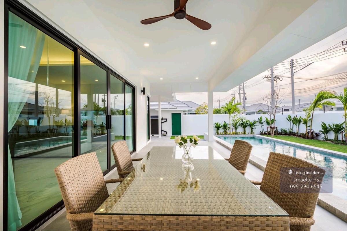 บ้านพร้อมเข้าอยู่ หลังเดียวเท่านั้น (Plot 20) พูลวิลล่าดีไซน์สวย บรรยากาศสงบ เหมาะทั้งอยู่อาศัยและลงทุน แบบบ้าน D 3 ห้องนอน | 3 ห้องน้ำ สระว่ายน้ำส่วนตัว ขนาด 3 × 9 เมตร ขนาดที่ดิน 133 ตารางวา พื้นที่ใช้สอย 221 ตารางเมตร ราคา 9,590,000 บาท บ้านสร้างเสร็จ พร้อมเข้าอยู่ ยกระดับด้วยวัสดุและงานตกแต่งเกรดพรีเมียม ให้ความรู้สึกหรูหราและอบอุ่นในทุกมุมของบ้าน เอกสารสิทธิ์ โฉนดครุฑแดง (Chanote) มั่นใจได้ในกรรมสิทธิ์ ทำเลคุณภาพ เงียบสงบ เป็นส่วนตัว เหมาะสำหรับครอบครัว ใกล้แหล่งอำนวยความสะดวกสำคัญ สนามกอล์ฟ Pineapple Valley (Belvida) โรงพยาบาล โรงเรียน ชายหาด เพียง 10–15 นาที จากตัวเมืองหัวหิน ระบบสาธารณูปโภคครบ ถนนคอนกรีตกว้าง 8–10 เมตร ไฟฟ้า 3 เฟส ระบบประปาจากปราณบุรี ระบบรักษาความปลอดภัยตลอด 24 ชม. รองรับไลฟ์สไตล์รักษ์โลก: Solar Panel และ EV Charger ก่อสร้างด้วยวัสดุคุณภาพ มั่นใจด้วยประสบการณ์และผลงานโครงการที่ประสบความสำเร็จมาแล้วหลายโครงการ บ้านที่ให้ทั้งคุณภาพชีวิต ความเป็นส่วนตัว และมูลค่าการลงทุนในระยะยาว