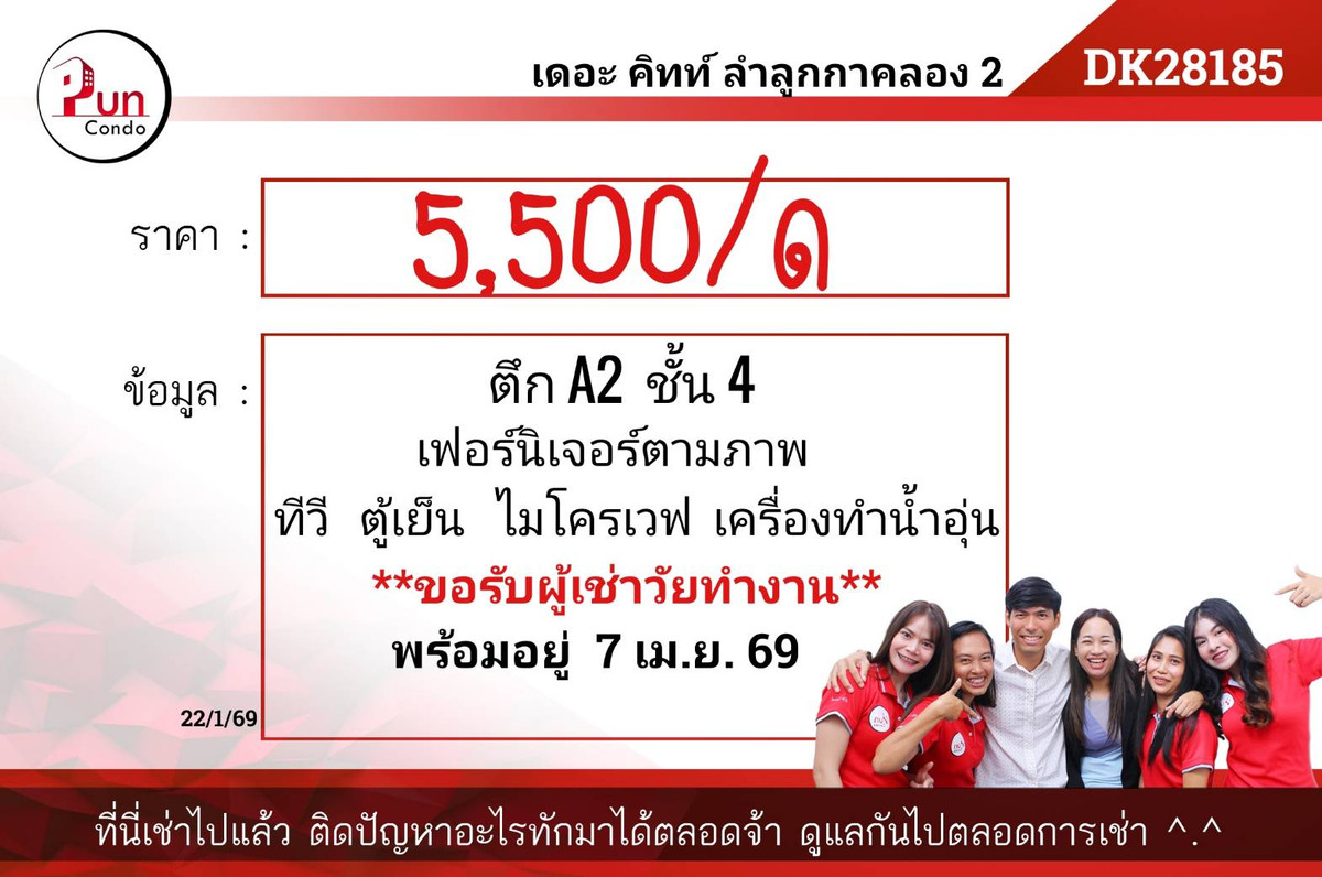 🏡 ให้เช่า 𝙏𝙝𝙚 𝙠𝙞𝙩𝙝 𝙇𝙖𝙢𝙡𝙪𝙠𝙠𝙖 𝙆𝙡𝙤𝙣𝙜𝟮 #และทุกคอนโดย่านรังสิต ✅ ห้องเข้ามาเพิ่ม ตกแต่งครบ แยกโซนชัดเจน 🚈 ทำเลดี ใกล้ BTS คูคต เดินทางสะดวก #คอนโดลำลูกกาคลอง2ให้เช่า 🍊 ตึกA2 ชั้น4 : ขนาด 28 ตร.ม 🍊 ค่าเช่า 5,500฿/เดือน : [ DK28185 ] 🛋 เฟอร์นิเจอร์ เครื่องใช้ไฟฟ้า ตามภาพ 💰แรกเข้าชำระ -ค่าเช่าล่วงหน้า 1 เดือน -เงินประกัน 2 เดือน *ค่าเช่ารวมค่าส่วนกลางแล้ว —————————————————————— 🔍 Pun Condo ผู้ช่วยส่วนตัว เช่า คอนโดย่านรังสิต 🌟 มีห้องหลายแบบ หลายตึก #ทุกโครงการย่านรังสิต > อยากดูห้องเพิ่มเติม ทักมาได้นะคะ 💬 📲 Line: @pun-condo (มี @) ☎️ คลิกเพื่อดูเบอร์โทรติดต่อ ——————————————————————— #ให้เช่าคอนโดย่านลำลูกกา #คอนโดใกล้แถวลำลูกกา #เดอะคิทท์ลําลูกกาคลอง2เช่า #คอนโดพร้อมอยู่ #คอนโดราคาถูก #Puncondo #ปันคอนโด #agent #รับฝากคอนโดรังสิต #ลงทุน #นายหน้าอสังหา