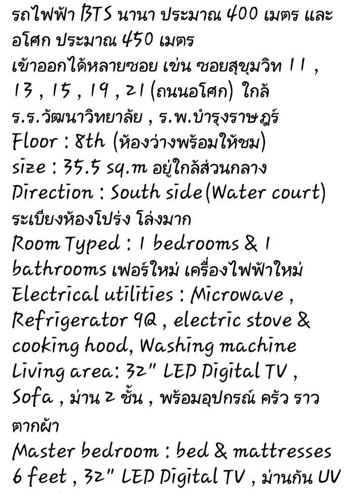 ☘️ให้เช่าคอนโด 15 Sukhumvit Residences 24 ตรม./ ชั้น 8 1ห้องนอน 1ห้องน้ำ 400ม.จากBTS นานา ค่าเช่า 16000-/เดือน สัญญา 1ปี ค่าเช่าล่วงหน้า 1 เดือน ค่าประกัน. 2 เดือน ☘️เฟอร์นิเจอร์ครบครันตามภาพ มีเครื่องซักผ้าในห้อง ☘️ Condo For Rent 15 Sukhumvit Residences 24 sq.m / 8 th.Fl 1 Bedroom / 1Bathroom 400 M. BTS Nana Rental1year 13000-/m. Minimum lease 1year 1 month in advance Deposit 2 months ☘️Fully furnished Has Washing Machine ☘️บริการรับฝาก-ขาย-เช่า อสังหาริมทรัพย์ทุกชนิด คอนโดแนวรถไฟฟ้า ฟรี!! ค่าการตลาด ☘️Please contact. K.Papassarin Tel & Line. : คลิกเพื่อดูเบอร์โทรติดต่อ Link line : https://line.me/ti/p/N6KRwsJd2D ☘️FB; page click link https://www.facebook.com/pg/Ninety-Nine-Asset-Plus คลิกเพื่อดูเบอร์โทรติดต่อ/shop/