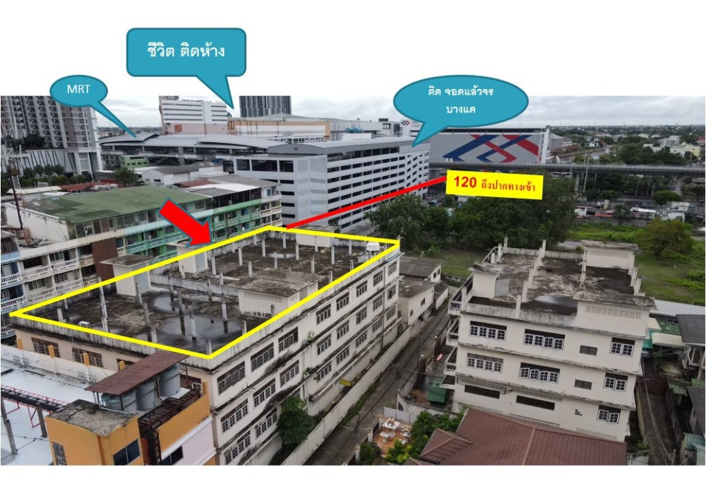 ขายตึก บางเเค เพชรเกษม 47 ขนาด 506 ตรว. 4 ชั้นใกล้ รถไฟฟ้าหลักสอง เยื้องเดอะมอลล์ บางแค พื้นที่สีแดง