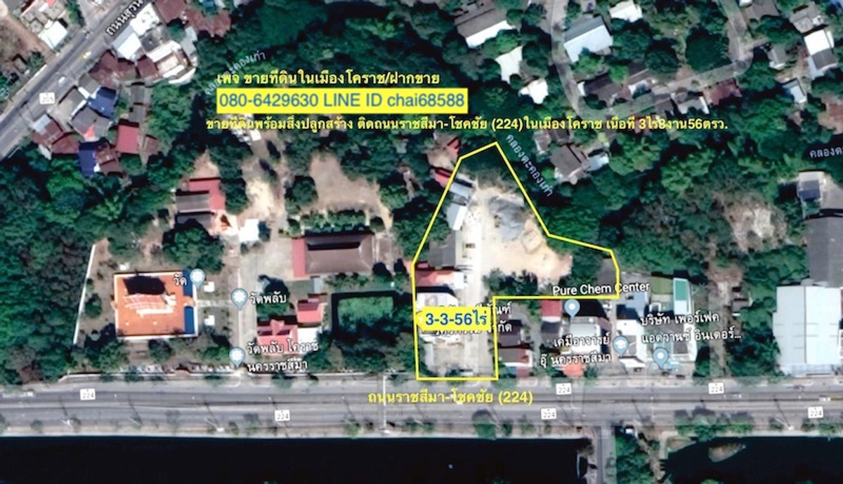 ขายที่ดินพร้อมสิ่งปลูกสร้าง เนื้อที่ 3.5ไร่ ติดถนนราชสีมา-โชคชัย (224) ในเมืองโคราช ใกล้วัดศาลาลอย