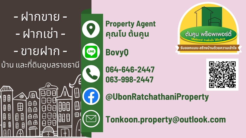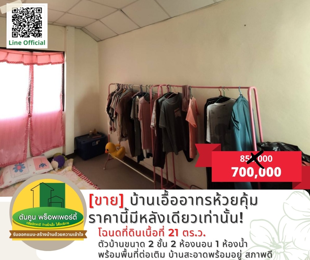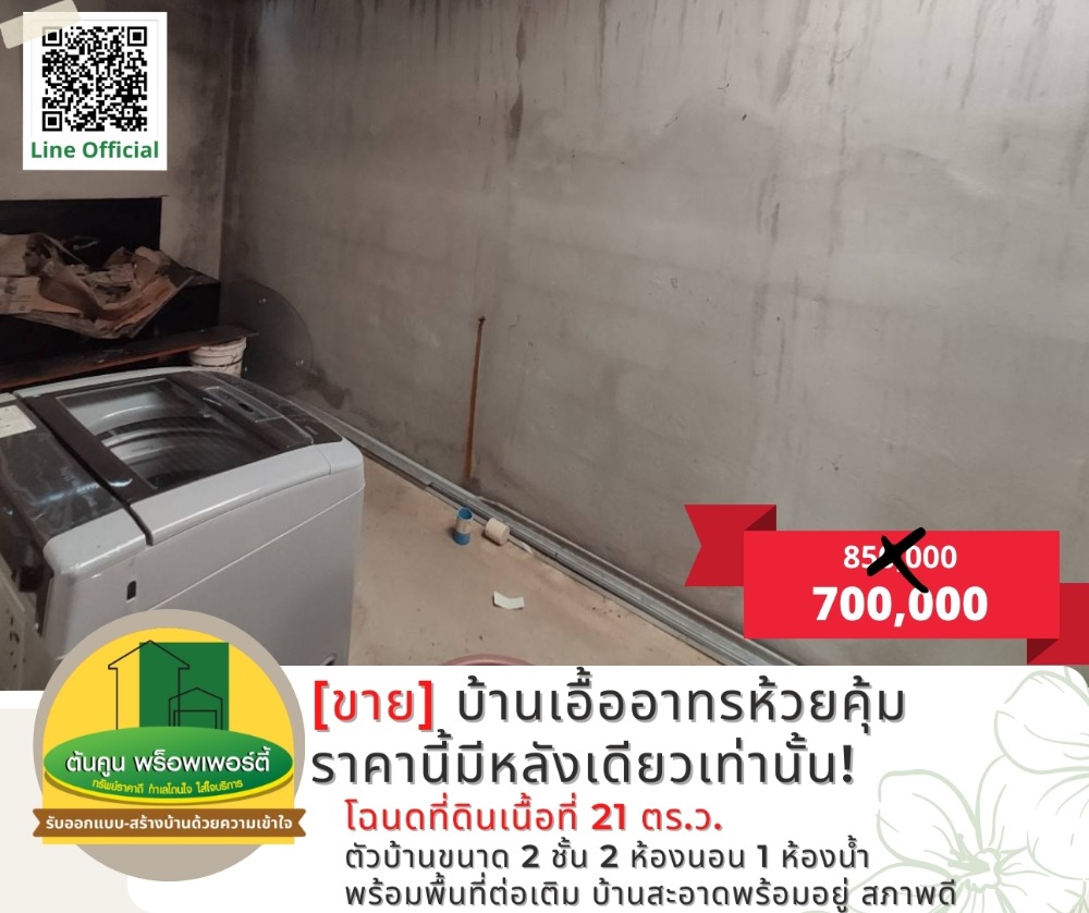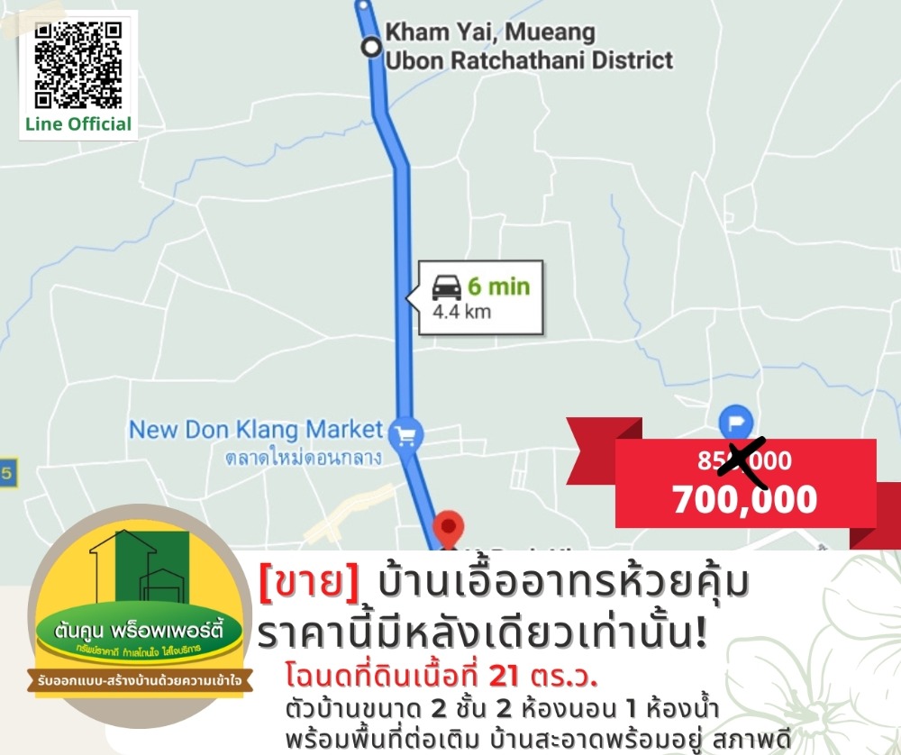 [ขาย] ลดพิเศษ! บ้านเอื้ออาทรห้วยคุ้ม สภาพสวย พร้อมต่อเติม อ.ขามใหญ่ จ.อุบลราชธานี [รหัส TK-1944-B100] + ลดราคาพิเศษ ราคานี้หายาก สนใจสามารถติดต่อนัดดูบ้านได้ + โฉนดที่ดินเนื้อที่ 21 ตร.ว. + ตัวบ้านขนาด 2 ชั้น 2 ห้องนอน 1 ห้องน้ำ พร้อมพื้นที่ต่อเติม + บ้านสะอาดพร้อมอยู่ สภาพดี สถานที่ใกล้เคียง : เทศบาลนครขามใหญ่, ตลาดดอนกลาง, โตโยต้าดีเยี่ยม ลดเหลือ 700,000 บาท (ค่าโอนกรรมสิทธิ์คนละครึ่ง) เดิมตั้งขายที่ 850,000 บาท 📢 นัดดูที่ดิน/สอบถามข้อมูลเพิ่มเติม ทักแชทหรือโทรมาคุยได้ที่ -> Line Official: http://line.me/R/ti/p/@rjg7947j -------------------------------- ติดต่อสอบถามเพิ่มเติม ☎️: คลิกเพื่อดูเบอร์โทรติดต่อ (โบ ต้นคูน) Line: @ubonproperty ☎️: คลิกเพื่อดูเบอร์โทรติดต่อ (ต้นคูน) -------------------------------- ติดตามทรัพย์เพิ่มเติมทางเพจ https://www.facebook.com/UbonRatchathaniProperty #ต้นคูนพร็อพเพอร์ตี้ ฝากขาย/ฝากเช่า ขายฝาก ขายบ้าน/ที่ดินในอุบลราชธานี บริการให้คำปรึกษาด้านอสังหาริมทรัพย์ #บ้านและที่ดินอุบลByต้นคูนพร็อพเพอร์ตี้ #นายหน้าอุบล #รับสร้างบ้าน #บ้านอุบล #ที่ดินอุบล #บ้านวาริน #ที่ดินวาริน #บ้านพร้อมสร้าง #บ้านมือสอง #ราคาไม่แพง
