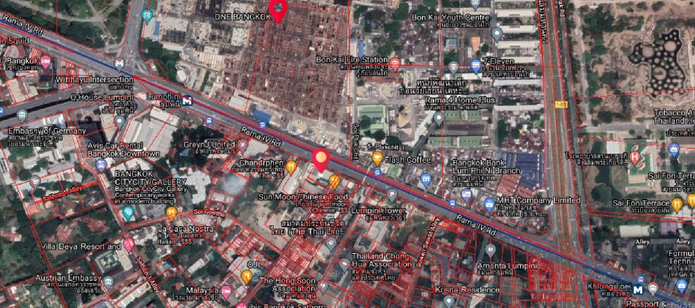 ขายที่ดินทำเลทองบนถนนพระราม4 ตรงข้ามโครงการ ONE BANGKOK landmarkระดับโลก ขนาด 1-0-8.6 ไร่ (408.6 ตร.ว. หรือ 1634.4ตร.ม.) หน้ากว้างติดถนนพระราม4 ประมาณ 49 เมตร หน้ากว้างติดถนนซอยงามดูพลี ประมาณ 37 เมตร ปัจจุบันบนที่ดินประกอบด้วย 1.อาคารพาณิชย์ 2 คูหา 3ชั้น พื้นที่ใช้สอย 576 ตร.ม. 2.อาคารพาณิชย์ 2 คูหา 3ชั้น พื้นที่ใช้สอย 600 ตร.ม. 3.อาคารพาณิชย์ขนาดใหญ่ 5 ชั้น พื้นที่ใช้สอยกว่า 2,080 ตร.ม 4.อาคารพาณิชย์ขนาดใหญ่ 4 ชั้น พื้นที่ใช้สอยกว่า 1,320 ตร.ม. และมีพื้นที่ลานจอดรถ ที่ดินตั้งอยู่บน ผังสีแดง พ.5 (พาณิชยกรรม) FAR 10:1 OSR 3 สามารถพัฒนาพื้นที่ใช้สอยได้สูงสุด 19,612.8 ตร.ม. ความกว้างถนนพระราม4 ประมาณ 28 เมตร สร้างอาคารสูงได้ถึง 24 ชั้น ทั้งคอนโดมิเนียม โรงแรม อาคารสำนักงาน ฯลฯ ผังสีและการใช้ประโยชน์ >> https://bit.ly/3DgZ0zw สถานที่ใกล้เคียง - โครงการ ONE BANGKOK 30 เมตร - MRT สถานีลุมพินี 250 เมตร - Q.house lumpini 350 เมตร - ถนนวิทยุ 400 เมตร - สวนลุมพินี 500 เมตร - ทางพิเศษเฉลิมมหานคร 500 เมตร - สถานเอกอัครราชทูตญี่ปุ่น 800 เมตร ขาย ตร.ว.ละ 2.5 ล้านบาท รวม 1,021,500,000 บาท ค่าโอนทั้งหมดคนละครึ่ง สนใจติดต่อ พัช คลิกเพื่อดูเบอร์โทรติดต่อ LINE ID : ploynapatch.p