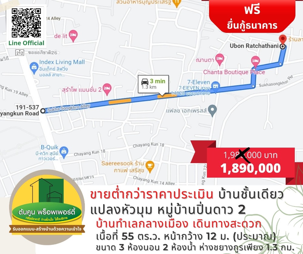 [ลดราคา] บ้านชั้นเดียวแปลงหัวมุม หมู่บ้านปิ่นดาว 2 ขายต่ำกว่าราคาประเมิน (บ้านนาควาย) บ้านอุบล ราคาไม่แพง [รหัส TK-1944-B180] จุดเด่น: ✅ ที่ดินเนื้อที่ 55 ตร.ว. (แปลงมุม) พื้นที่ใช้สอยกว้าง 120 ตร.ม. ✅ ขนาด 3 ห้องนอน 2 ห้องน้ำ ✅ หน้ากว้าง 12 x 20 เมตร (โดยประมาณ) ✅ ราคาขายตามสภาพ บ้านทำเลกลางเมือง ✅ สาธารณูปโภคครบ เดินทางสะดวก ห่างถนนชยางกูรเพียง 1.3 กม. สถานที่ใกล้เคียง : กองบิน21, มบ.เจริญทรัพย์ 10, โลตัส, สุนีย์ พิเศษเพียง 1,890,000 บาท (พร้อมโอน) (เดิม 1,980,000 บาท) 📣 พร้อมยื่นกู้ธนาคาร 📣 ขายต่ำกว่าราคาประเมิน ทรัพย์ราคาดี ทำเลโดนใจ ใส่ใจบริการ สนใจสอบถามคลิ๊กเลย -> Line Official: http://line.me/R/ti/p/@rjg7947j -------------------------------- ติดต่อสอบถามเพิ่มเติม ☎️: คลิกเพื่อดูเบอร์โทรติดต่อ (เชษฐ์ ต้นคูน) Line: @ubonproperty ☎️: คลิกเพื่อดูเบอร์โทรติดต่อ (ต้นคูน) -------------------------------- ติดตามทรัพย์เพิ่มเติมทางเพจ https://www.facebook.com/UbonRatchathaniProperty/ #ต้นคูนพร็อพเพอร์ตี้ ฝากขาย/ฝากเช่า ขายฝาก ขายบ้าน/ที่ดินในอุบลราชธานี บริการให้คำปรึกษาด้านอสังหาริมทรัพย์ #บ้านและที่ดินอุบลByต้นคูนพร็อพเพอร์ตี้ #นายหน้าอุบล #รับสร้างบ้าน #บ้านอุบล #ที่ดินอุบล #บ้านวาริน #ที่ดินวาริน #บ้านพร้อมสร้าง #บ้านมือสอง #ราคาไม่แพง