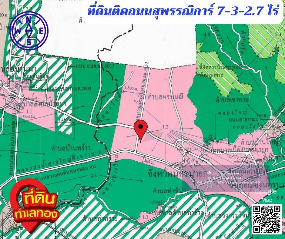 Nakhon Nayok Land 7-3-2.7 Rai, next to Supannika Road. Near Chang Intersection Market , the land is located at Supannika Road, Phrom Mani Subdistrict, Mueang Nakhon Nayok District, Nakhon Nayok Province, between Supanniga Intersection and Chang Intersection The land is adjacent to Suphannika Road, 168 meters long, located in the pink area, community type, suitable for doing business. make a living buy as an inheritance or for future investment This location is definitely worth it Nearby places : Eden Farm 4 km. Nakhon Nayok Hospital 5.5 km. Ganesha Park 14 km. Lotus Nakhon Nayok 6.5 km Khun Dan Prakan Chon Dam 25 km. Makro Nakhon Nayok 9.0 km. Royal Military Academy 10 km. Global House Nakhon Nayok 3.0 km Google map : https://goo.gl/maps/k3H5nn4c7kc8KAcc9 area 7-3-2.7 rai (3,102.7 sq wa) price 8,750 baht/square wa. (3,500,000 baht/rai) Total price 27,148,625 baht title deed ready to transfer Price includes transfer costs Make an appointment to see the area. For more information, contact Khun Pae Line : happypea749 https://line.me/ti/p/WbmkWfUuvu Or call Contact number Follow new plots of land in the open chat "Land Nakhon Nayok Nice to live in Nakhon Nayok" Please tap the link below to join this open chat https://line.me/ti/g2/lcMRwypUcwPIjsE0DaFPbU1Yu4SCcvP5kxdaiw?utm_source=invitation&utm_medium=link_copy&utm_campaign=default