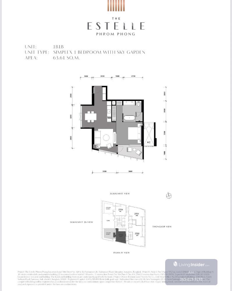 The Estelle Sukhumvit 26: 1bed 57.5sqm 17,500,000 Am: 0656199198