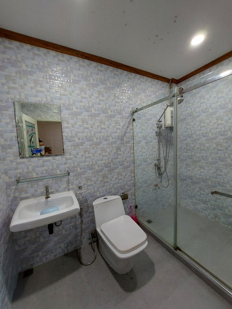 For rent, 2-storey townhouse (beautiful), 18 square meters, 2 bedrooms, 2 bathrooms (with balconies in both bedrooms), 1 living room, 1 large kitchen with hood, gas stove, 3 air conditioners, furnitur