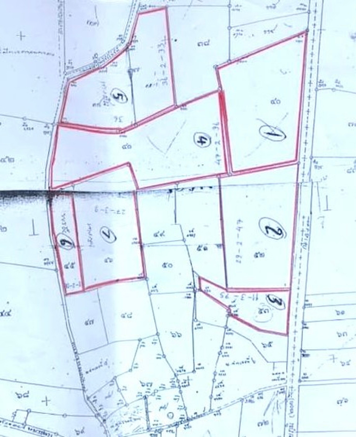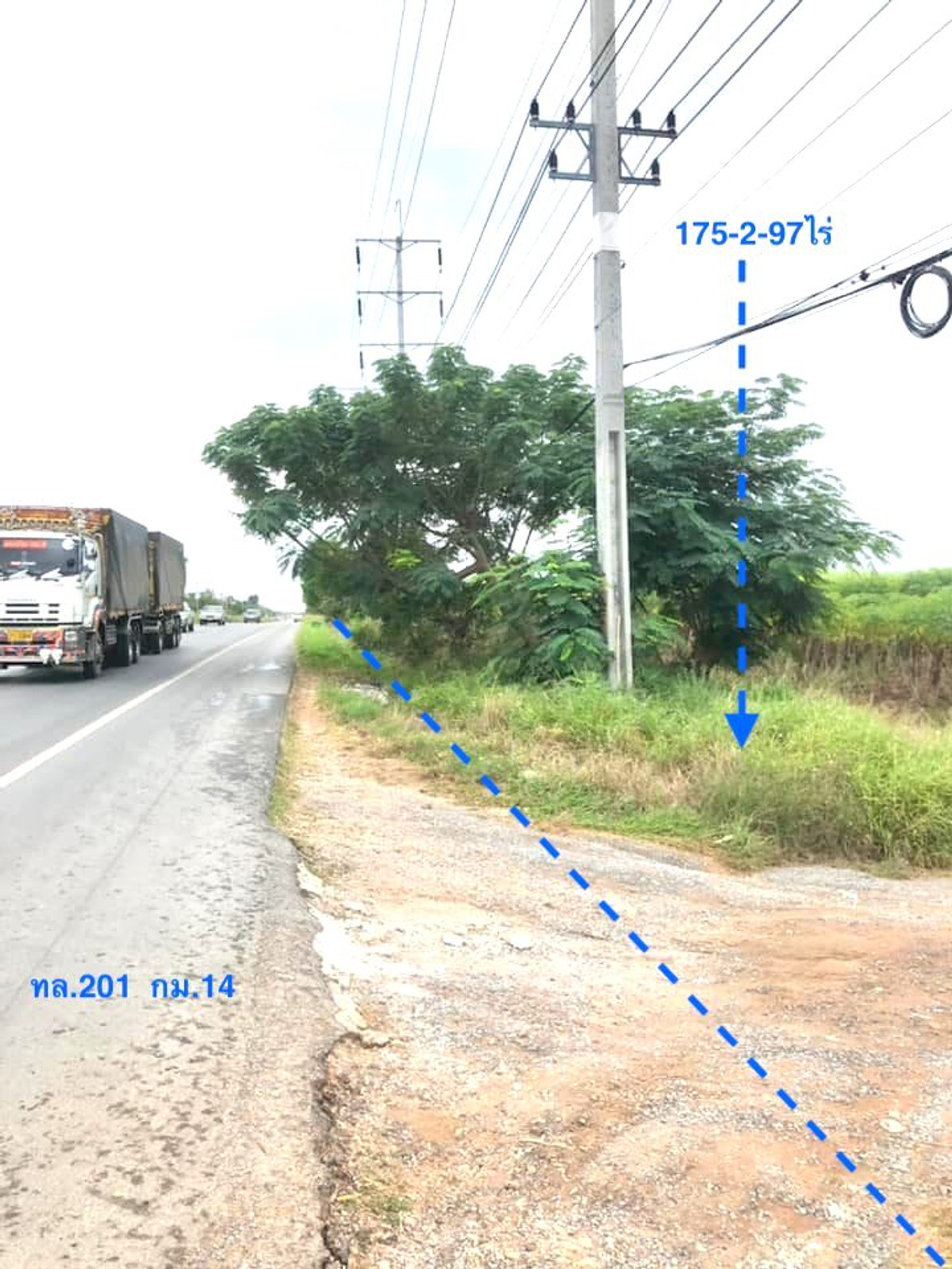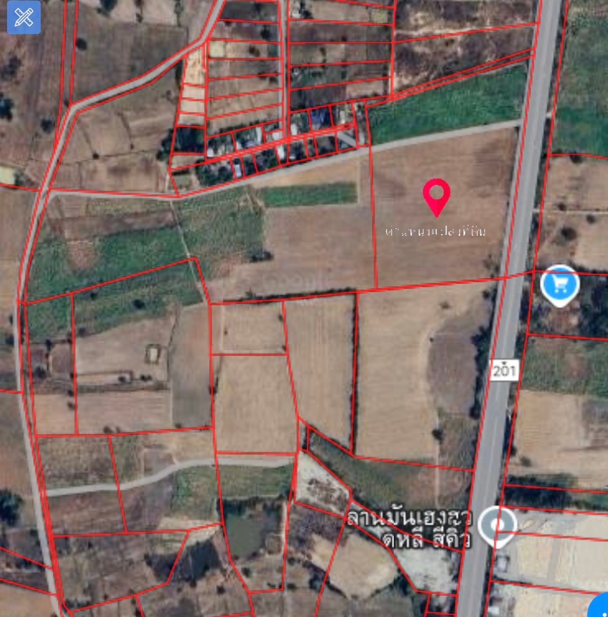 Land for sale on Chaiyaphum-Sikhio Road (Thor Lor. 201) km. 14 9 km. away from the motorway, land area 176-2-97 rai, land width 720 meters, depth 650 meters, Nong Bua Noi Subdistrict, Sikhio District,