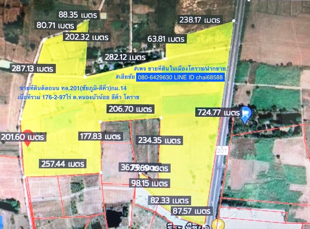 Land for sale on Chaiyaphum-Sikhio Road (Thor Lor. 201) km. 14 9 km. away from the motorway, land area 176-2-97 rai, land width 720 meters, depth 650 meters, Nong Bua Noi Subdistrict, Sikhio District, Nakhon Ratchasima, good location, suitable for developing a shopping mall. large office Warehouse for other products, price 700,000 baht per rai, negotiable. If interested, contact Hia Chai Contact number LINE ID chai68588 #page https://web.facebook.com/chai68588 Beautiful land for sale, good environment Convenient location in and out in many ways price is negotiable Want map coordinates or more information, chat / call to talk