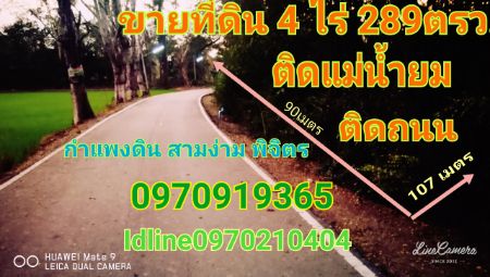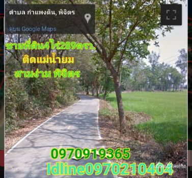 Land for sale, next to the Yom River, on the road, 4 rai 2 ngan 89 sq wa, Sam Ngam, Phichit ::Highlights:: 1. Next to the Yom River 2. Adjacent to asphalt road 3. Away from the national highway 1312 (Sam Ngam - Sam Yaek Kamphaeng Din, only 450 meters, connecting Nakhon Sawan - Bangkok ::details:: - Size 4 rai 2 ngan 89 sq.wa 1. Front width 90 meters, next to the river 83 meters, 107 meters deep 2. Filled and always on the road 3. Empty It doesn't take advantage :: Nearby places :: Kamphaeng Din Post Office 400 meters, Kamphaeng Din Municipal Office 550 meters, Sam Ngam Hospital 2.5 meters, Kamphaeng Din Temple Coordinates: http://maps.google.com/maps?q=16.585,100.219 Price: 1,300,000 baht Interested contact: Amnuay Sriyota Contact number Line: Contact number Dedicated, sincere, transparent. Every step