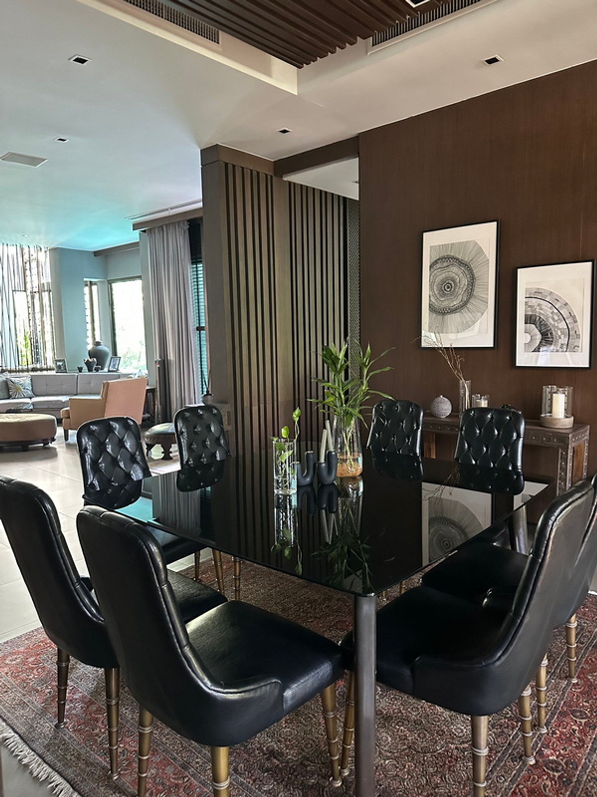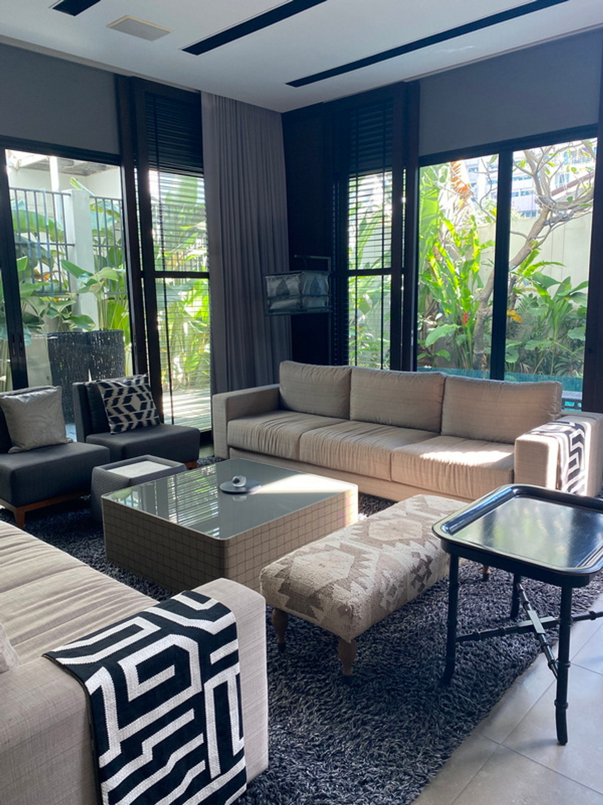 Luxury Pool Villa Sukhumvit Phrom Phong for Sale Stand Alone House Land Area 188 Tarang Wah Built Up Area 700 sq mtrs on first two floors, additional built up area not finish inside of 550 sq mtrs on 3rd and 4th floors (this space does not include Pool, Pool Deck, Balconies, Garage, Garden) Kitchen, Dining and multiple living areas, Home Theatre room, 5 bedrooms, all with large baths, Study, Prayer room, Store rooms, Generous Maids quarters with baths and toilets Features: Salt Water Lap Pool 13.5 x 4.5 mtrs (5 mtrs on Deck side, 4 mtrs on Gate side), Garden, Italian Marble Flooring, Hard Wood Flooring, Acmen fully fitted kitchen, Highest quality bathroom fixtures, Mini Kitchenette on second floor, Elevator shaft, Covered parking 8 Totem Ceiling Speakers, 2 Bose Poolside Speakers Lutron 6 Step remote light control system in Home Theatre Room. The private family room converts into a unique flowing space from the pool through the pool decks into the family room and flowing out to the private garden Price : 179 Million Baht Contact : Seasons One Real Estate Suchart: Contact number Vinit: Contact number E-mail: Contact email