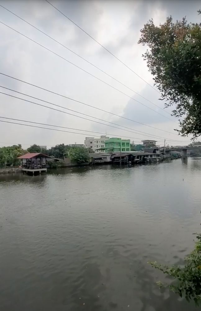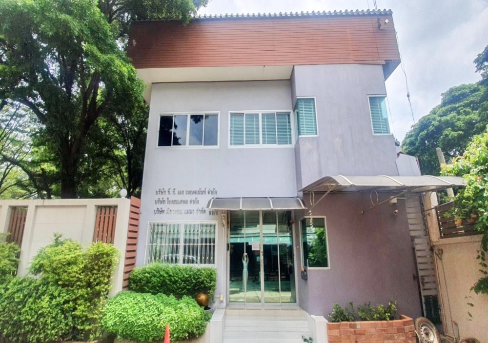 House for sale with office building. Waterfront next to Maha Sawat Canal, Suan Phak Road , total area 1 rai, 1 ngan, 13 sq m. 2 storey house, 4 bedrooms, 5 bathrooms, 1 maid's room, parking for 6