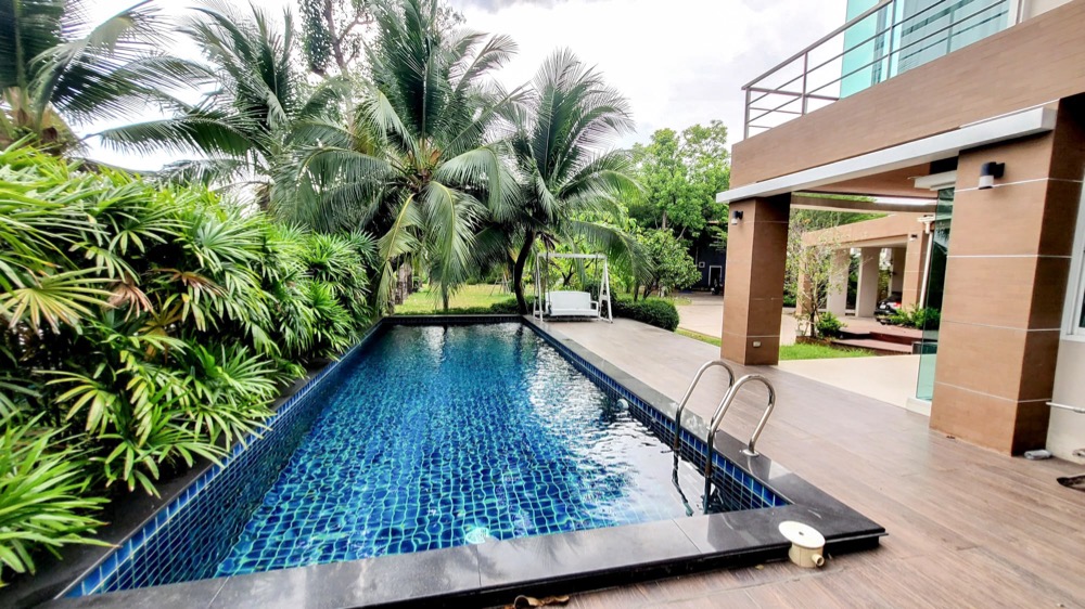 House for sale with office building. Waterfront next to Maha Sawat Canal, Suan Phak Road , total area 1 rai, 1 ngan, 13 sq m. 2 storey house, 4 bedrooms, 5 bathrooms, 1 maid's room, parking for 6 cars, swimming pool with furniture, built-in air conditioner, water heater 2-storey office building, area of useable area 120 square meters , price 60 million , contact , bee Contact number Pound Contact number , easy to travel in and out of many routes next to 2 main roads 1. Ratchaphruek Road 2. Kanchanaphisek Road near the point of up and down the Si Rat Expressway connecting the way to Mo Chit Chatuchak nearby places - The Circle Ratchaphruek- Cystal sb Ratchaphruek - Food villa Ratchaphruek - The Walk Ratchaphruek