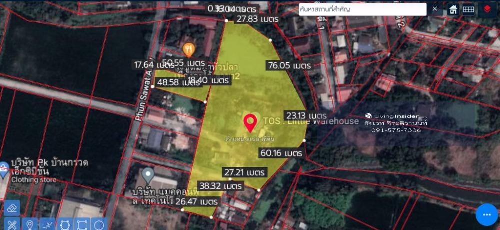 Location : Chatuchot Road Soi 10 (Soi Pool Sawat), Or-Ngoen Sub-district, Sai Mai District, Bangkok 10220 Google map : https://goo.gl/maps/tgq38RyAGoxF1YVc8 From Chatuchot Soi 10, enter Soi Plu Sawat Road for about 680 meters. The land is on the left-hand side. Details * Size 8 rai 1 ngan 50 square wah * Money bag-shaped land, the width is about 17 meters, the depth is about 47 meters. When entering, it is a large piece of land like a money bag. (Land at entrance 2 ngan, land inside 7 rai 3 ngan 50 square wah) * Yellow Plan Y2-3 * Public road 5 meters * Facing West * The surrounding area has villages, lands, companies, suitable for housing allocation project or office Nearby places - Expressway Chatuchot checkpoint - Sai Mai District Office - Big C Food Place Sukhapiban 5 *** Selling price 80,000,000 baht (approximately 23,880 baht per square wah) welcome for negotiation For more information Please contact Tachavej Jirativanont (Pong) Realty One Estate (Thailand) Co.,Ltd. (Under Thai Real Estate Broker Association) Tel: Contact number LINE ID : tachavej7336 Messenger : m.me/livingmoreproperty email: Contact email Facebook: www.facebook.com/livingmoreproperty Youtube: https://www.youtube.com/user/Tachavij Website: www.tachavij.myweb.in.th