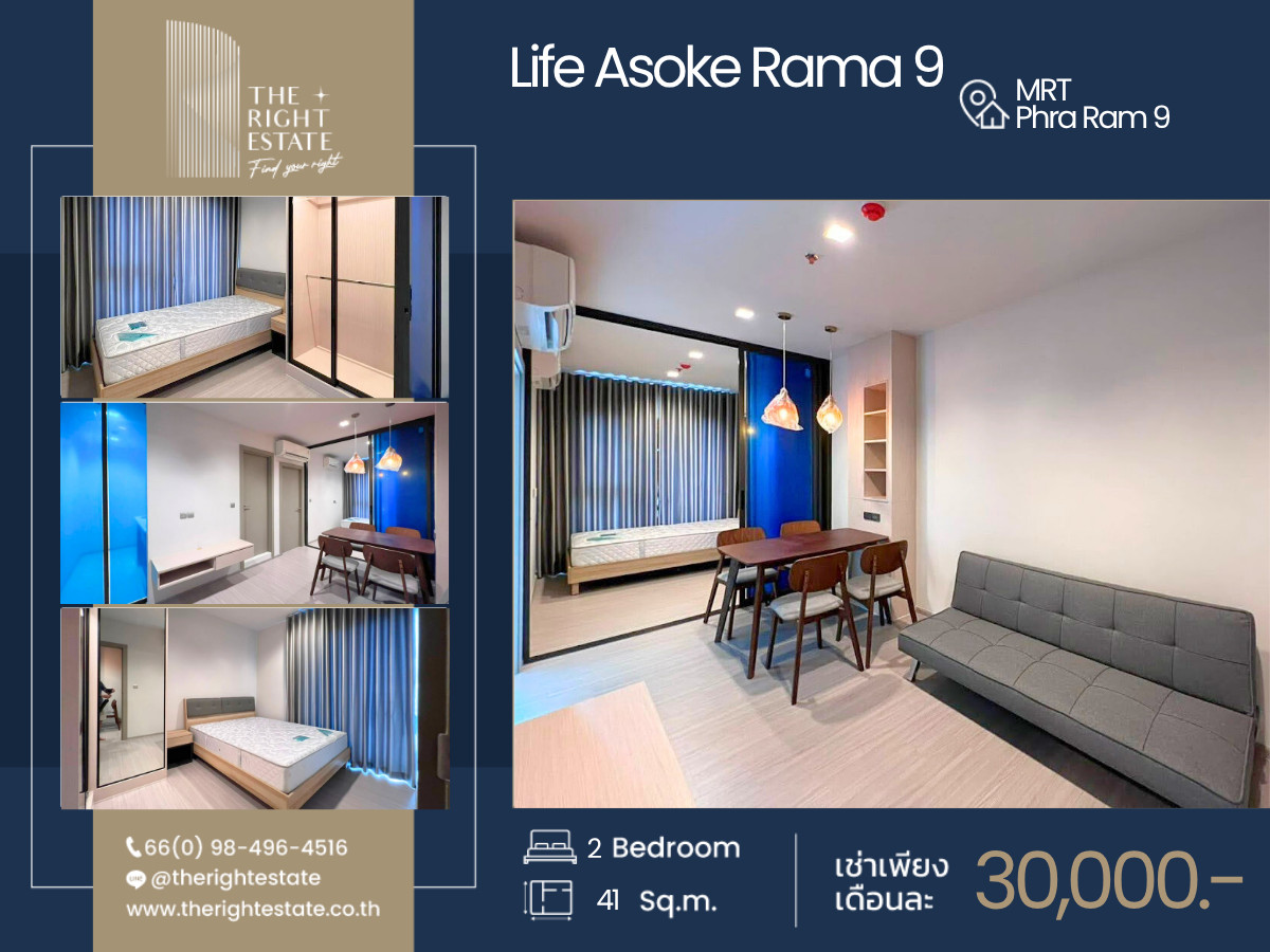 [For Rent] Condo - Life Asoke Rama 9 - B0208 ▪️ Location:MRT Phra Ram 9 Area:41 Sq.m Floor:39 Type:2 Bed 1 Bath Rental fee:30,000 Baht/ Month (Negotiable) ▪️位置:MRT Phra Ram 9 面积: 41 平方米 楼层:39 层 类型:2 卧室 1 卫生间 租金:30,000 泰铢/月 (可谈) -------------------------------------------------------- ❝ บริการ รับฝาก ขาย-เช่า บ้าน คอนโด อสังหาริมทรัพย์ ❞ Renting and selling service for your own properties 为您提供房产服务 买卖-租房 -------------------------------------------------------- ✒️ สนใจติดต่อนัดชมห้อง : contact us to view more units : 联系方式: Phone no : 098 l 496 l 4516 [Nano : Thai/Eng] Phone no : 086 l 383 l 8689 [Man : Thai/Eng] Line ID. : https://page.line.me/therightestate Whatsapp ID : Contact number WeChat Id : wxid_zl7fk5jvzs6m12 Co-Agent ติดต่อ : https://lin.ee/CPDovxy Facebook : https://www.facebook.com/therightestate/ Website : www.therightestate.co.th Check available units : https://www.therightestate-stock.com/ -------------------------------------------------------- 𝙏𝙝𝙚 𝙍𝙞𝙜𝙝𝙩 𝙀𝙨𝙩𝙖𝙩𝙚, 𝙁𝙞𝙣𝙙 𝙮𝙤𝙪𝙧 𝙧𝙞𝙜𝙝𝙩