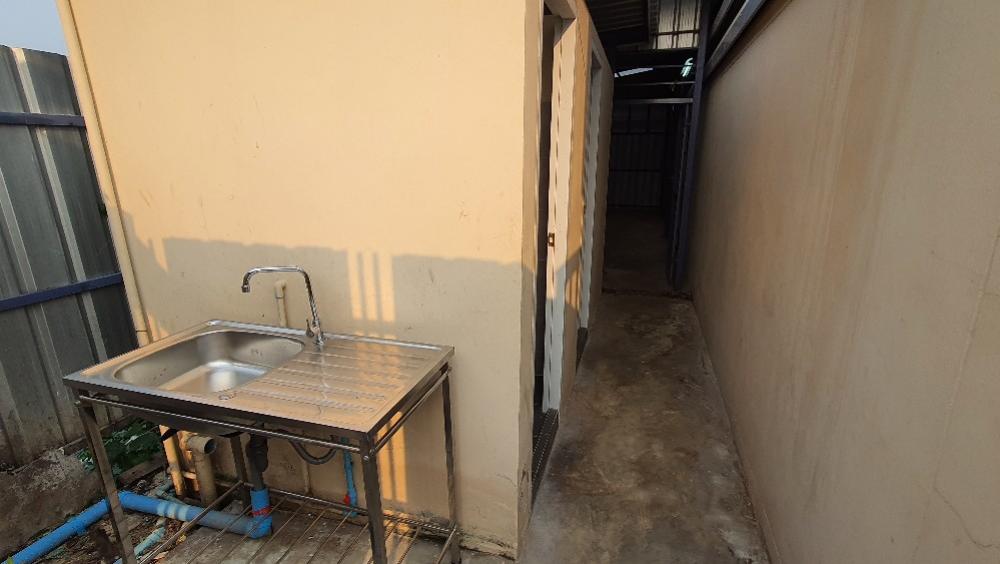 Warehouse building for rent, has a mezzanine, bedrooms, bathrooms, area 425 square meters, spacious interior, good ventilation, not hot, container trucks can enter the front, located in Soi Anan Ngam Charoen 33, Intersection 1, Tha Kham Subdistrict, Bang Khun Thian