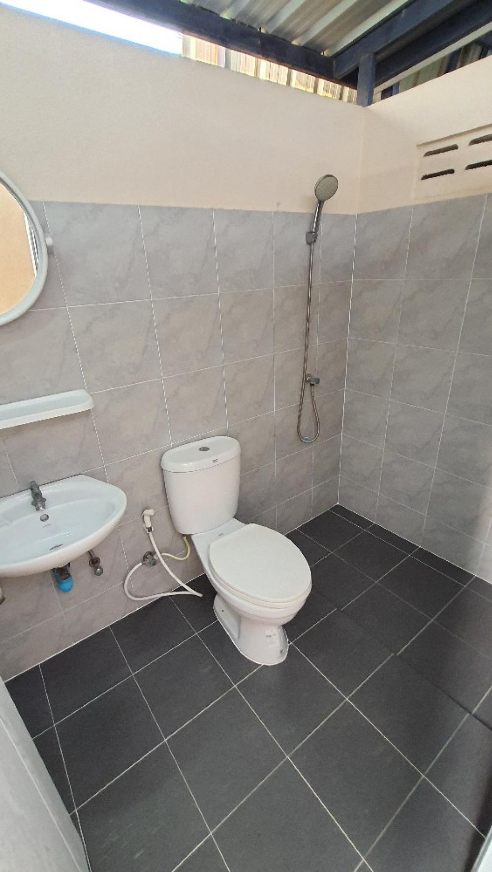 Warehouse building for rent, has a mezzanine, bedrooms, bathrooms, area 425 square meters, spacious interior, good ventilation, not hot, container trucks can enter the front, located in Soi Anan Ngam