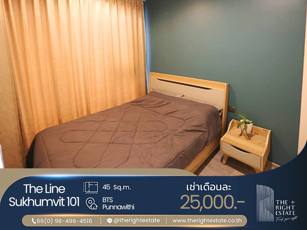 [For Rent] Condo - The Line Sukhumvit 101 - C0073 ▪️ Location:BTS Punnawithi Area:45 Sq.m Floor:20 Type:1 Bed 1 Bath Rental fee:25,000 Baht/ Month (Negotiable) ▪️位置:BTS Punnawithi 面积: 45 平方米 楼层:20 层 类型:1 卧室 1 卫生间 租金:25,000 泰铢/月 (可谈) -------------------------------------------------------- ❝ บริการ รับฝาก ขาย-เช่า บ้าน คอนโด อสังหาริมทรัพย์ ❞ Renting and selling service for your own properties 为您提供房产服务 买卖-租房 -------------------------------------------------------- ✒️ สนใจติดต่อนัดชมห้อง : contact us to view more units : 联系方式: Phone no : 098 l 496 l 4516 [Nano : Thai/Eng] Phone no : 086 l 383 l 8689 [Man : Thai/Eng] Line ID. : https://page.line.me/therightestate Whatsapp ID : Contact number WeChat Id : wxid_zl7fk5jvzs6m12 Co-Agent ติดต่อ : https://lin.ee/CPDovxy Facebook : https://www.facebook.com/therightestate/ Website : www.therightestate.co.th Check available units : https://www.therightestate-stock.com/ -------------------------------------------------------- 𝙏𝙝𝙚 𝙍𝙞𝙜𝙝𝙩 𝙀𝙨𝙩𝙖𝙩𝙚, 𝙁𝙞𝙣𝙙 𝙮𝙤𝙪𝙧 𝙧𝙞𝙜𝙝𝙩