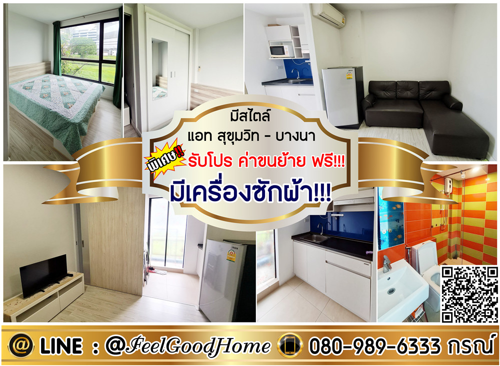 ***For rent, Stylish Bangna (washing machine!!! + 2 air conditioners!!!) *Get a special promotion* LINE: @Feelgoodhome (with @ in front) ============================== Accepting deposits for houses and condos for urgent rent!!!! TEL: Contact number Korn Line: @Feelgoodhome (with @ in front) https://lin.ee/ovdtqth * (Please capture the screen and show it on LINE) * ============================ *** Get a promotion!!! Moving fee 1000 baht *** ============================= *Special!!! Reduced to 8,000 (from 9,000) 1 month in advance / 2 months deposit (1 year contract) Parking + fitness + swimming pool (free use!!!) ============================ • Width: 28 sq m • Floor: 2 - Top loading washing machine - 2 air conditioners - Water heater, microwave, refrigerator, TV ============================= (Next to Central Bangna / Big C Bangna)