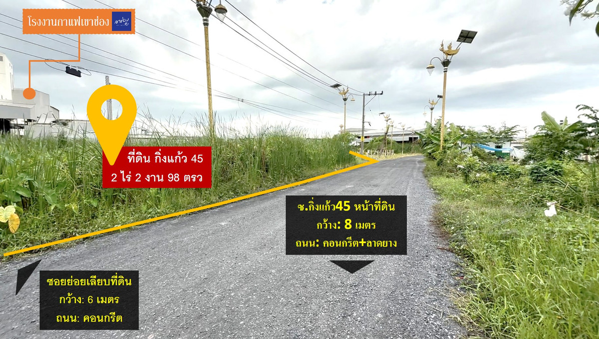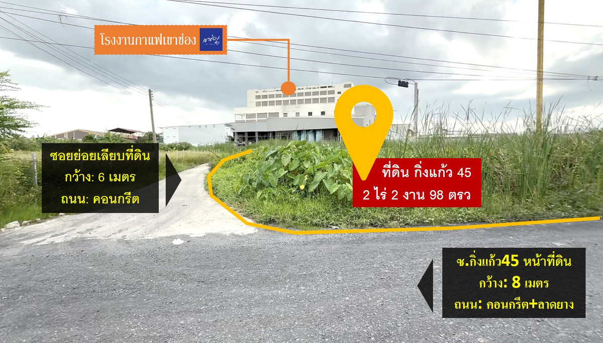 SPECIAL PRICE! Land For Sale (2.75 Rais) Near Suvarnabhumi Airport, Adjacent to the Khao Shong Coffee Factory, Easy Access from King Keaw Road (Bang Phli, Samut Prakan) - Convenient access from both King Keaw Road (Soi 45, 750 meters, 4 minutes) and Lad Krabang Road (Soi 30/1, 1.2 kilometres, 5 minutes) - Within 10 minutes’ drive to the main access intersection to Suvarnabhumi Airport - Large road infrastructure (Road Width): 8 meters (King Keaw Road, Soi 45 access) and 6 meters (road immediately adjacent to the property) - Potential for development into: warehouse, industrial & distribution centre, apartment, hotel, residential, office, and/or long-term investments Total Lot Size: 2 Rais 298 Tarang Wah (2.75 Rais) Price: 31,840,000 Baht Price / Tarang Wah: 29,000 Baht Prime Corner Land with Dual Road Access: Well-positioned corner plot with excellent accessibility, fronting two roads and located at a four-way intersection, offering high visibility and flexible development potential. Land size: 38 m frontage × 136 m depth East-facing frontage on King Kaew 45 / Lat Krabang 30/1 North side along a secondary road West side adjacent to a public canal, providing openness and natural separation Wide road access: Main road width: 8 m Side road width: 6 m Ideal for residential, commercial, warehouse, or mixed-use development. Easy access, strong frontage, and superior usability compared to surrounding plots. Please Contact: Khun Jit (จิตร) Tel: Contact number ( Contact number) Email: Contact email Line ID: jit.redwoodrealty