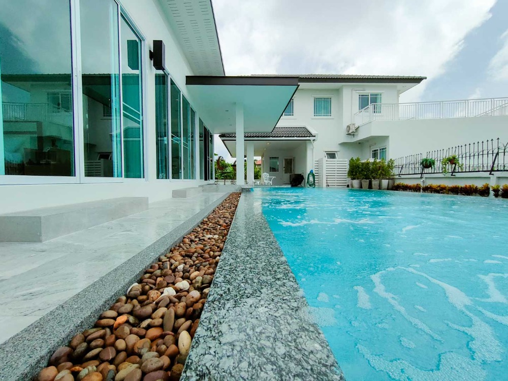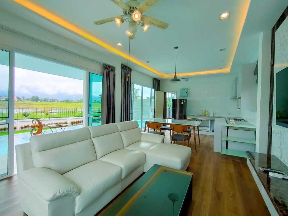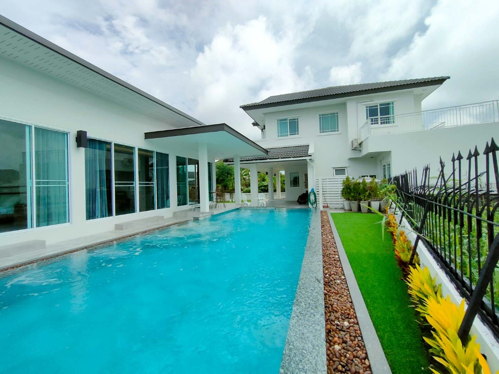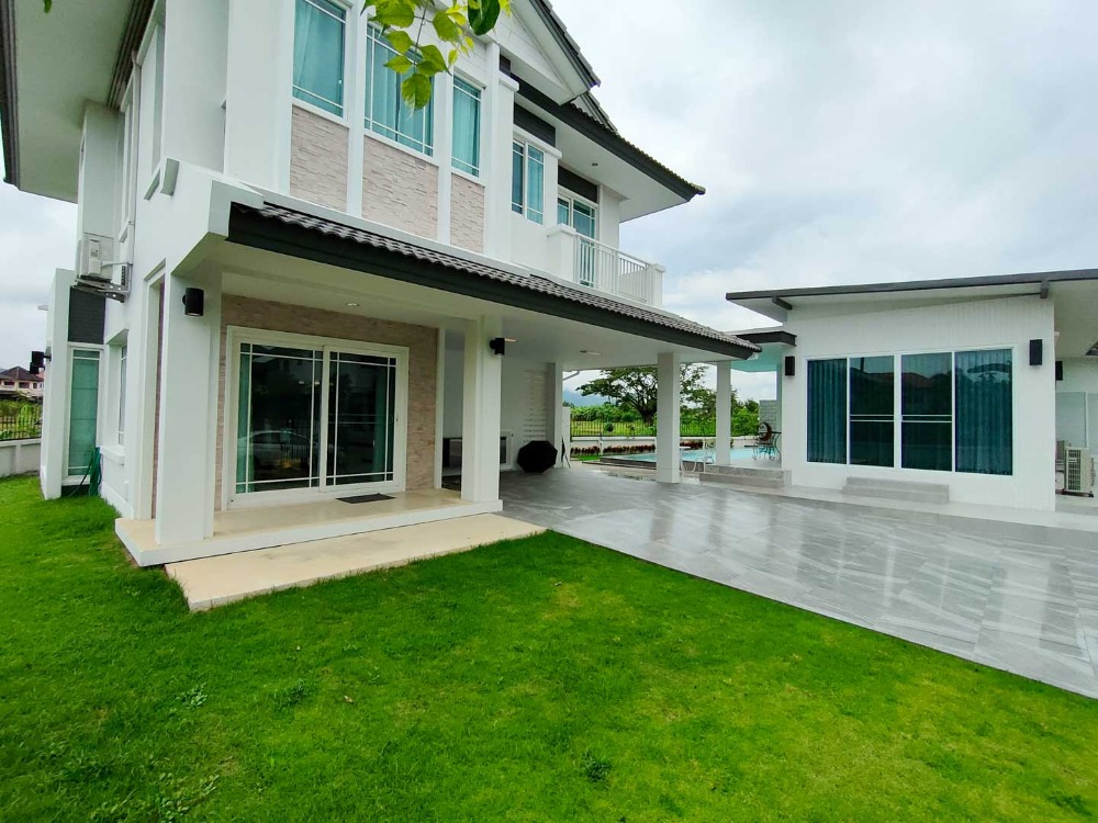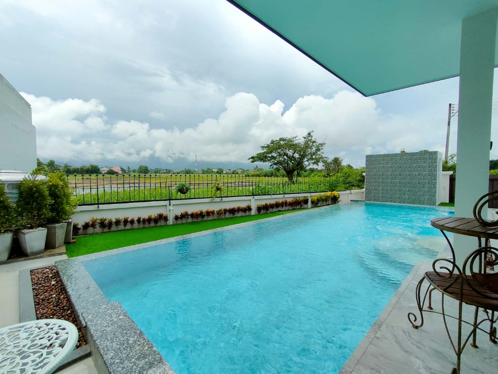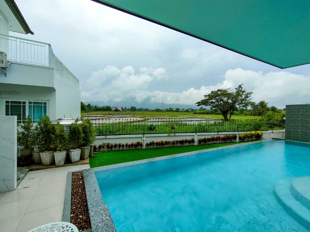 The only pool villa in Chiang Mai with pictureque Doi Suthep view, 5 bedrooms, a guest pavilion, Mae Hia Subdistrict Rental fee 70,000 baht/month (2,002 USD) Tel. Contact number CM2202649 4 bedrooms, 4 bathrooms, 1 guest bedroom or maid's room with ensuite bathroom, Land area of 100 sq wa (400 sq.m.) and usable area of Salt water swimming pool with spade system 4x11 m. The house is separated into 2 which are the main house and the guest house next to the swimming pool. There is a lawn area in front of the house for children to play and a parking lot that can accommodate 4 cars. 2nd floor has a balcony extending from the small bedroom to admire the panoramic view of Doi Suthep and rice fields. The guest or entertainment pavilion next to the pool consists of a bedroom with a bathroom, kitchen counter and a living room overlooking the mountain. Located in gated and secured village with security guards and security system Convenient location; only 5 minutes to Mae Hia Market, Makro Hang Dong and Big C Ha Dong, 10-15 minutes to Chiang Mai Airport and Central Plaza Chiang Mai Airport. Close to many international schools such as American Pacific International School (Primary), Little Star Ambassador Bilingual School, Hana Christian International Kindergarten, Meritton British International School, Sunshine Kindergarten, Sarasas Witaed Lanna school, and Lanna International school (10 minutes). Rental price: 65,000 Baht/month (two-month security deposit, one-month pay up front, one-year contract minimum) For viewing, please contact: Johnny Facebook: #chiangmaipremiumproperty Tel. Contact number Line ID: johnnijj Wechat ID: cmpremiumproperty ( Contact number) Whatsapp: Contact number Email: Contact email #chiangmairealestateagentbroker #chiangmairealestatecompany #chiangmairealestateforrent #chiangmaicondoforsale