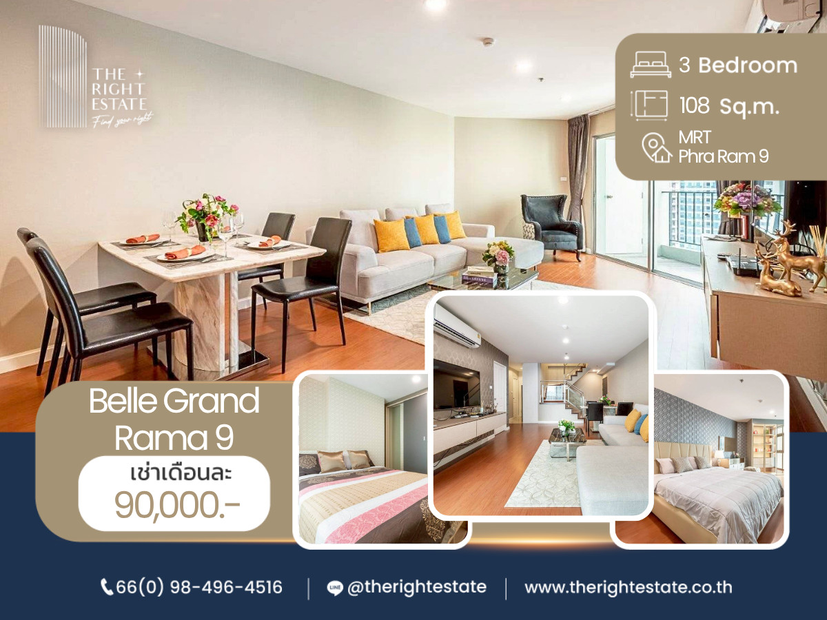 [For Rent] Condo - Belle Grand Rama 9 - AY0331 ▪️ Location:MRT Phra Ram 9 Area:108 Sq.m Floor:25 Type:3 Bed 3 Bath Rental fee:90,000 Baht/ Month (Negotiable) ▪️位置:MRT Phra Ram 9 面积: 108 平方米 楼层:25 层 类型:3 卧室 3 卫生间 租金:90,000 泰铢/月 (可谈) -------------------------------------------------------- ❝ บริการ รับฝาก ขาย-เช่า บ้าน คอนโด อสังหาริมทรัพย์ ❞ Renting and selling service for your own properties 为您提供房产服务 买卖-租房 -------------------------------------------------------- ✒️ สนใจติดต่อนัดชมห้อง : contact us to view more units : 联系方式: Phone no : 098 l 496 l 4516 [Nano : Thai/Eng] Phone no : 086 l 383 l 8689 [Man : Thai/Eng] Line ID. : https://page.line.me/therightestate Whatsapp ID : Contact number WeChat Id : wxid_zl7fk5jvzs6m12 Co-Agent ติดต่อ : https://lin.ee/CPDovxy Facebook : https://www.facebook.com/therightestate/ Website : www.therightestate.co.th Check available units : https://www.therightestate-stock.com/ -------------------------------------------------------- 𝙏𝙝𝙚 𝙍𝙞𝙜𝙝𝙩 𝙀𝙨𝙩𝙖𝙩𝙚, 𝙁𝙞𝙣𝙙 𝙮𝙤𝙪𝙧 𝙧𝙞𝙜𝙝𝙩