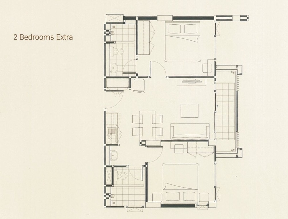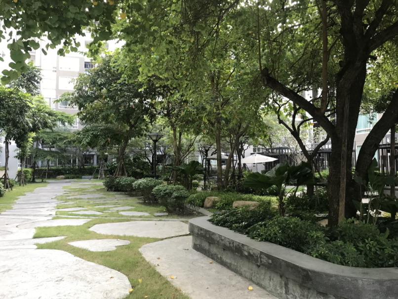 Condo for rent, 2 bedrooms, 2 bathrooms, 1 living room , garden view, located on the 7th floor, corner room, away from elevators and trash 2 months deposit, at least 1 year contract with 1 parking car