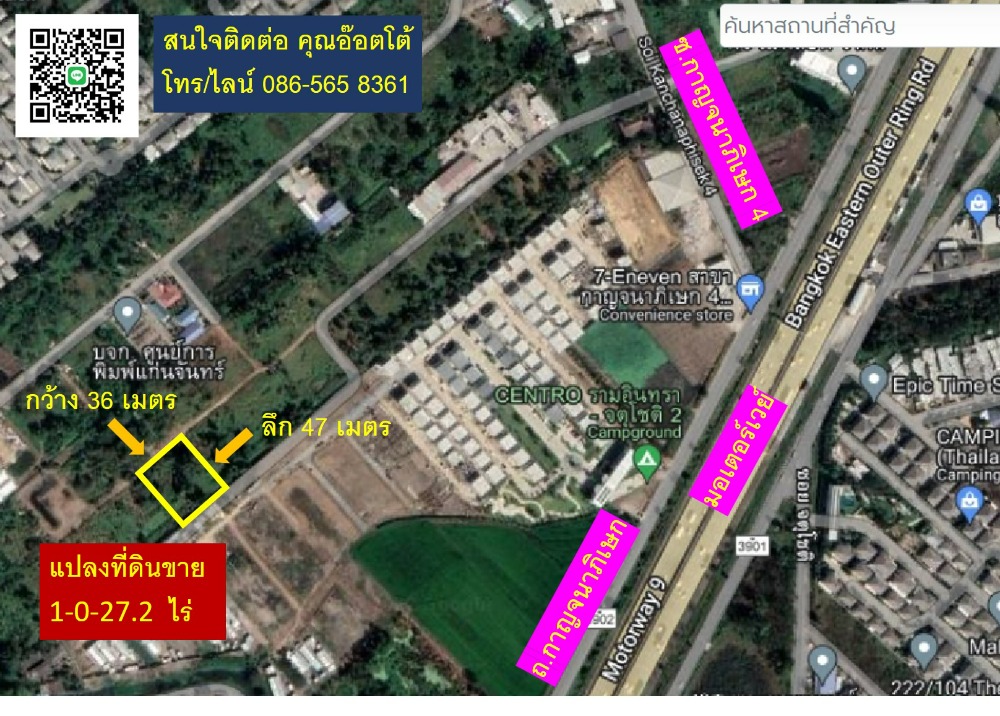 📌 Selling cheap!! Empty land, size 1 rai, 27.2 sq.wa., Soi Kanchanapisek 4, Eastern Ring Road, Chatuchot, opposite the village of Phraya Suren ✅Highlights: - in the community Surrounded by allocated villages - convenient transportation, near the Eastern Ring Road and Chatuchot Expressway - The surrounding land is empty as well. Suitable for allocating village plots Build a warehouse, residence or rent - a beautiful square shape. Able to make full use of the space ✅ Land details : - size 1 rai 27.2 sq.wa. - width 36 meters, depth 47 meters (approximately) 📌Selling only 10.9 million baht !!🔥🔥 ✅ Interested contact Khun Otto call/line 📞 Contact number ✅ Places nearby : - at the mouth of Soi Kanchanaphisek 4, about 700 meters - Chatuchot Expressway, about 2 km - Big C Sukhaphiban 5, about 7 km - Or Ngern Market, about 6 km.- CGH Saimai Hospital, about 7 km. - Big C Saimai, about 8.6 km - Safari World 9 km.- Legacy Golf Club 10 km ✅ Coordinates: https://goo.gl/maps/7WzqgfvQjH1Xk1Ff7