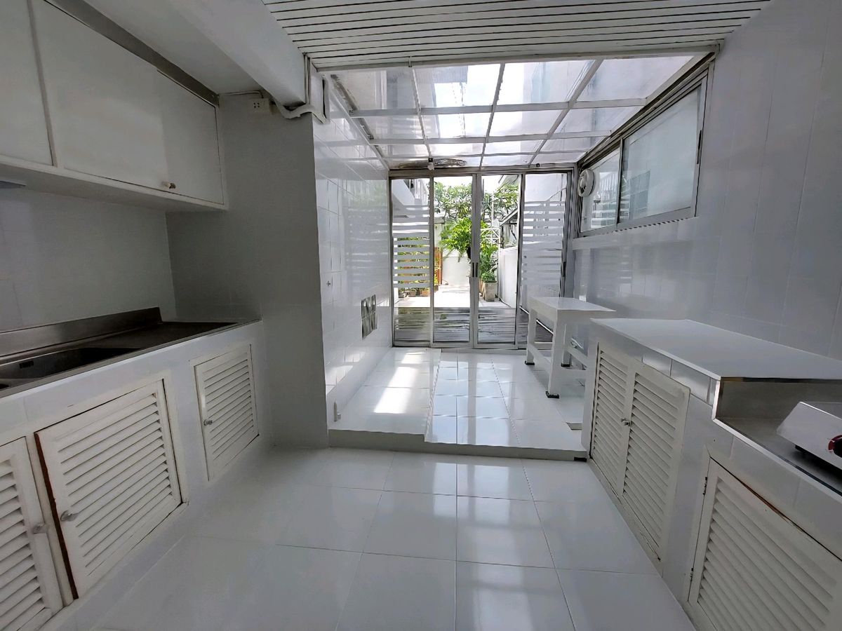 For rent, 2 storey detached house, area 64 sq m. 5 bedrooms, 2 bathrooms, 1 ironing room, 1 built-in kitchen, inside / outside kitchen. fully furnished Beautiful built-in after 8 air conditioners, loc