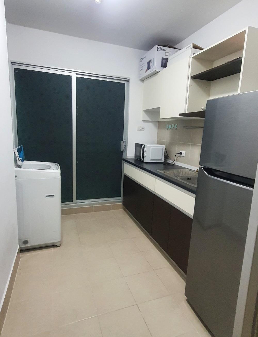 For rent Supalai City Resort Phranangklao 7,000 baht/month 18th floor room 33 sq.m. Appliances and furniture - sofa, TV and shelf, refrigerator, washing machine, desk, wardrobe, floor Place shoes, she