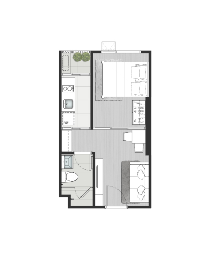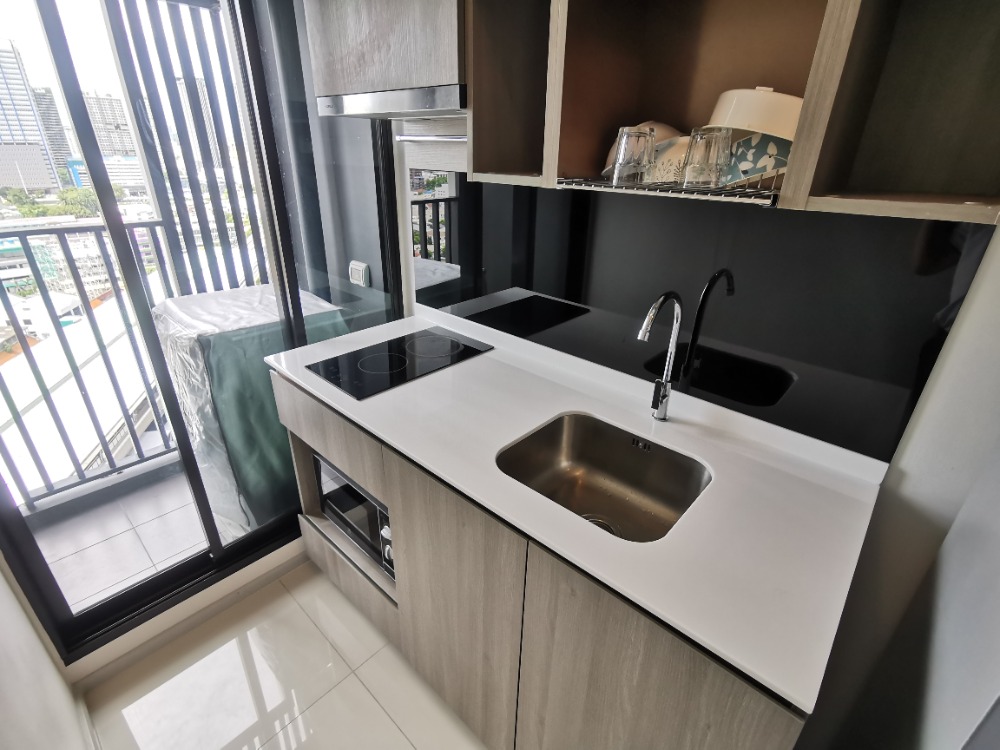 - Rent 14,000 baht/month (Free! Common fees and parking rights for 1 car) - Room type 1 bedroom, 1 bathroom, 1 kitchen (closed kitchen) - Size 27 sq m., 20th floor, 3 meter high ceiling room, airy lik