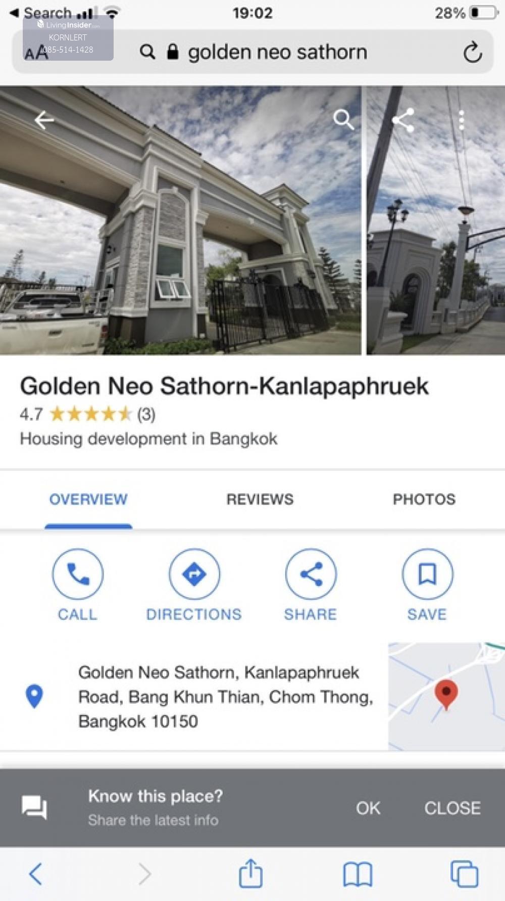 Sell Detached House: Golden Neo Sathorn Type: London Utility space : 161 sq.m. Land space: 41 sq.m. 4 Bedrooms and 4 bathrooms Family area in 2nd level, Kitchen, Laundry area, 2 Parking lots. 22 Micro-pile poles put on land as to avoid land collapse. Owner can fully add on more construction . House Direction: South Wes .. whole day .. comfortably windy. 12 meters width Main street 9 meters width for house street THB38 per sqm. maintenance fee per month, collect in yearly basis. Only 8 Km. from Sathorn road. Facilities; With Clubhouse, fitness, garden, pool surrounded with greenery atmosphere. Security : Key card entrance/ Security guard 24 hours. proximity: Hospital : Phayathai 3 School: British Columbia International school, SISB Thonburi, Lertlar Malls / Supermarrket: The Mall, Makro, Lotus, Big c, Max Value Contact: Contact number (Owner)