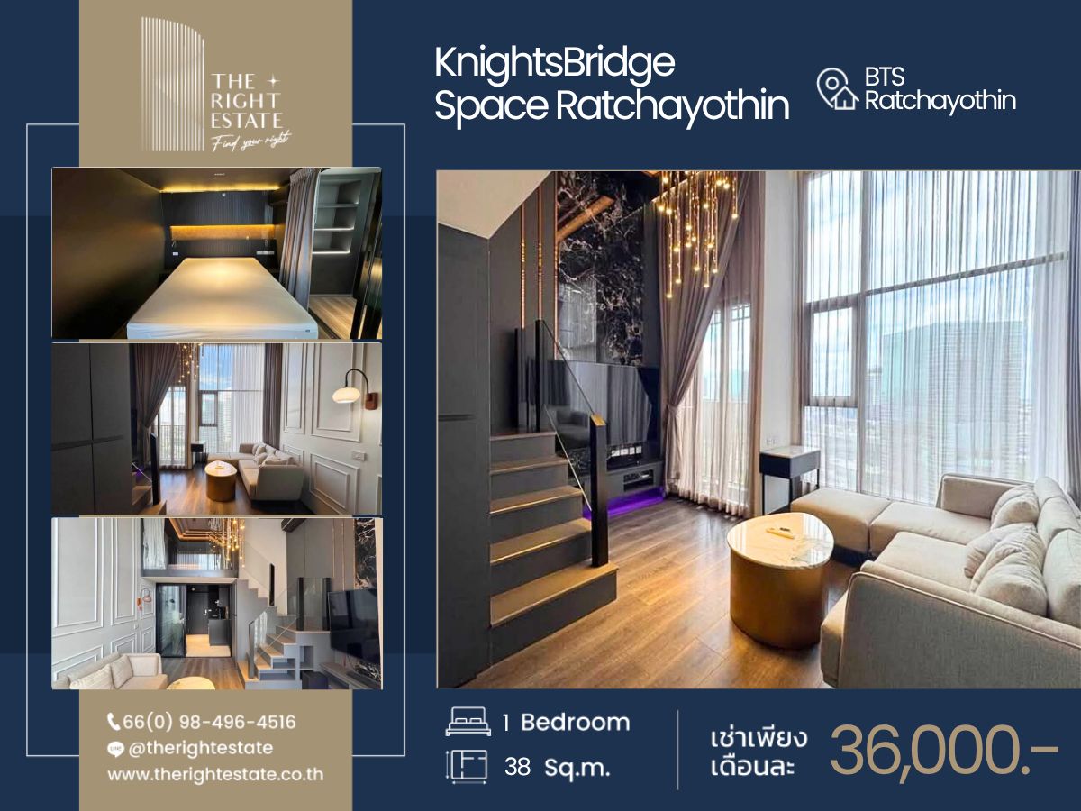 [For Rent] Condo - KnightsBridge Space Ratchayothin - R0036 ▪️ Location:BTS Ratchayothin Area:38 Sq.m Floor:28 Type:1 Bed 1 Bath Rental fee:25,000 Baht/ Month (Negotiable) ▪️位置:BTS Ratchayothin 面积: 38 平方米 楼层:28 层 类型:1 卧室 1 卫生间 租金:25,000 泰铢/月 (可谈) -------------------------------------------------------- ❝ บริการ รับฝาก ขาย-เช่า บ้าน คอนโด อสังหาริมทรัพย์ ❞ Renting and selling service for your own properties 为您提供房产服务 买卖-租房 -------------------------------------------------------- ✒️ สนใจติดต่อนัดชมห้อง : contact us to view more units : 联系方式: Phone no : 098 l 496 l 4516 [Nano : Thai/Eng] Phone no : 086 l 383 l 8689 [Man : Thai/Eng] Line ID. : https://page.line.me/therightestate Whatsapp ID : Contact number WeChat Id : wxid_zl7fk5jvzs6m12 Co-Agent ติดต่อ : https://lin.ee/CPDovxy Facebook : https://www.facebook.com/therightestate/ Website : www.therightestate.co.th Check available units : https://www.therightestate-stock.com/ -------------------------------------------------------- 𝙏𝙝𝙚 𝙍𝙞𝙜𝙝𝙩 𝙀𝙨𝙩𝙖𝙩𝙚, 𝙁𝙞𝙣𝙙 𝙮𝙤𝙪𝙧 𝙧𝙞𝙜𝙝𝙩