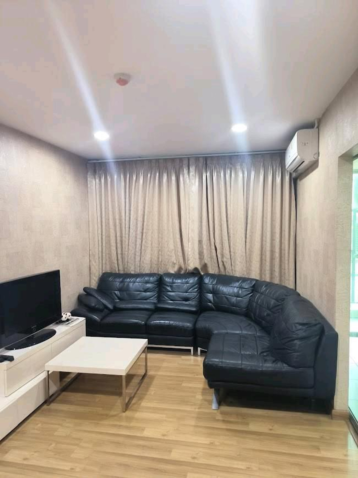 Condo for rent, Premio Prime Kaset-Nawamin, size 41 sq m., Building B, 4th floor, free transfer, 1 bedroom, 1 bathroom, 1 living room, 2 air conditioners, separating the bedroom, living room and kitchen.
