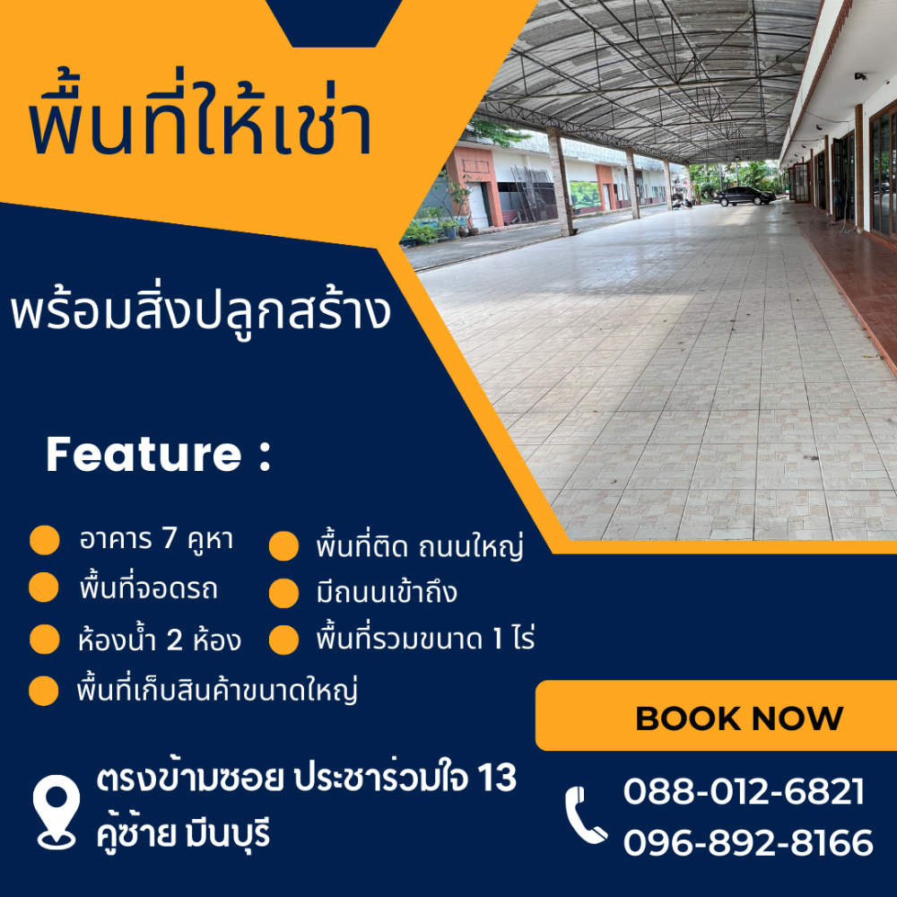 - Next to Pracha Ruam Jai Road, opposite Pracha Ruam Jai Soi 13 - Near convenience store 7-11, lotus express Near Interkids International School, Khlong Saen Saep Mosque School , near Vejkarunrat Hospital Makro Nong Chok District Office - Width 18 meters, length 90 meters, total area 1 rai - Divided for rent into booths - with buildings Office building/parking/ensuite bathroom - 2 month insurance - 1 month in advance - Long term contract of 3 years or more Owner rents it himself Contact K'Min​ Contact number​ (Line id)​k'Fa Contact number (Line id)​ Owner rents it himself Location : https://goo.gl/maps/3Xq4acGSkZ2r3RRk7