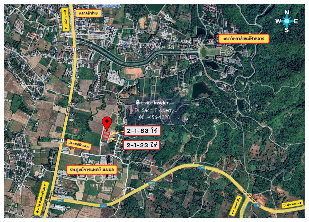 Property ID : M02395 Land near Mae Fah Luang University Medical Center Hospital, Mueang District, Chiang Rai Province - Area 4 rai 3 ngan 6 square wah (1,906 sq m) - (2 plots) width approximately 91 meters, depth approximately 87 meters - Plot 1, area 2-1-83 rai (46 x 87 meters) - Plot 2, area 2-1-23 rai (45 x 83 meters) - land facing east, next to a public road - North and south next to the land - West next to the public mine shaft ------------------------------------------------ : : Outstanding features : : - Red Garuda title deed documents, 2 title deeds located in the area Pink city plan - Near the community, convenient travel, can enter and exit many routes, only 900 meters from Phahon Yothin Road. - Tap water - electricity and internet access - suitable for dormitories, rental houses, cafes, restaurants, houses, businesses related to hospitals, Because this hospital Built as a large hospital with 800 beds, it has many personnel. ------------------------------------------------ location Location : : Enter Soi Ban Takhian Dam. Next to Mae Fah Luang University Medical Center Hospital, Nang Lae Subdistrict, Mueang District, Chiang Rai Province Google Map : : https://goo.gl/maps/aQNPyrsfcYRVWxqp8 ------------------------------------------------ : : Nearby important places : : - Mae Fah Luang University Medical Center Hospital - Mae Fah Luang University - Fah Thai Market - Doi Din Daeng Pottery - Long Neck Karen Hilltribe Village - Baan Dam Museum - Bangkok Hospital Chiang Rai - Medical Science Center 1/1 Chiang Rai ------------------------------------------------ Selling price : : 14,600,000 baht (7,660 baht/sq wa) (transfer expenses Half each person) ------------------------------------------------- : : For more details, contact : : Mr. Chatsachi Chatpapamon (Aom) (affiliated with the Thai Real Estate Brokers Association) Tel : Contact number LINE ID : dr.sachiproperty Facebook : Dr. Sachi Property