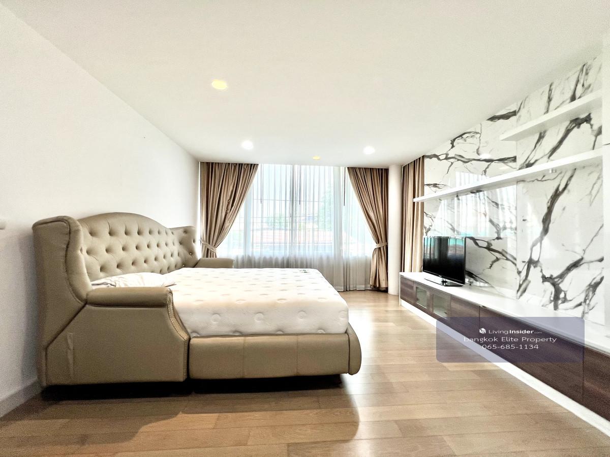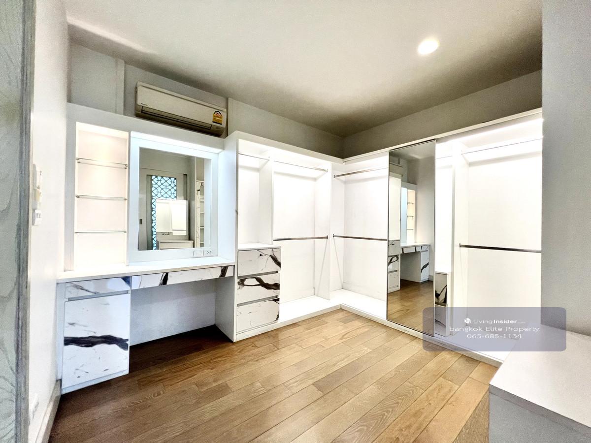 3 storey detached house for rent in Sutthisan area near Sirithep School. Nice decoration with furniture and appliances. ** Only 1.5 kilometers from MRT Sutthisan - Usable area 300 square meters - 4 bedrooms, 3.5 bathrooms - 2 kitchens, 2 living rooms - Corner plot house with a shady garden in front of the house - Able to raise animals Rent 95,000 baht per month 1 year lease contract, 2 months security deposit, 1 month advance payment If interested to visit, contact Khun Big. Call : Contact number Line : big Contact number