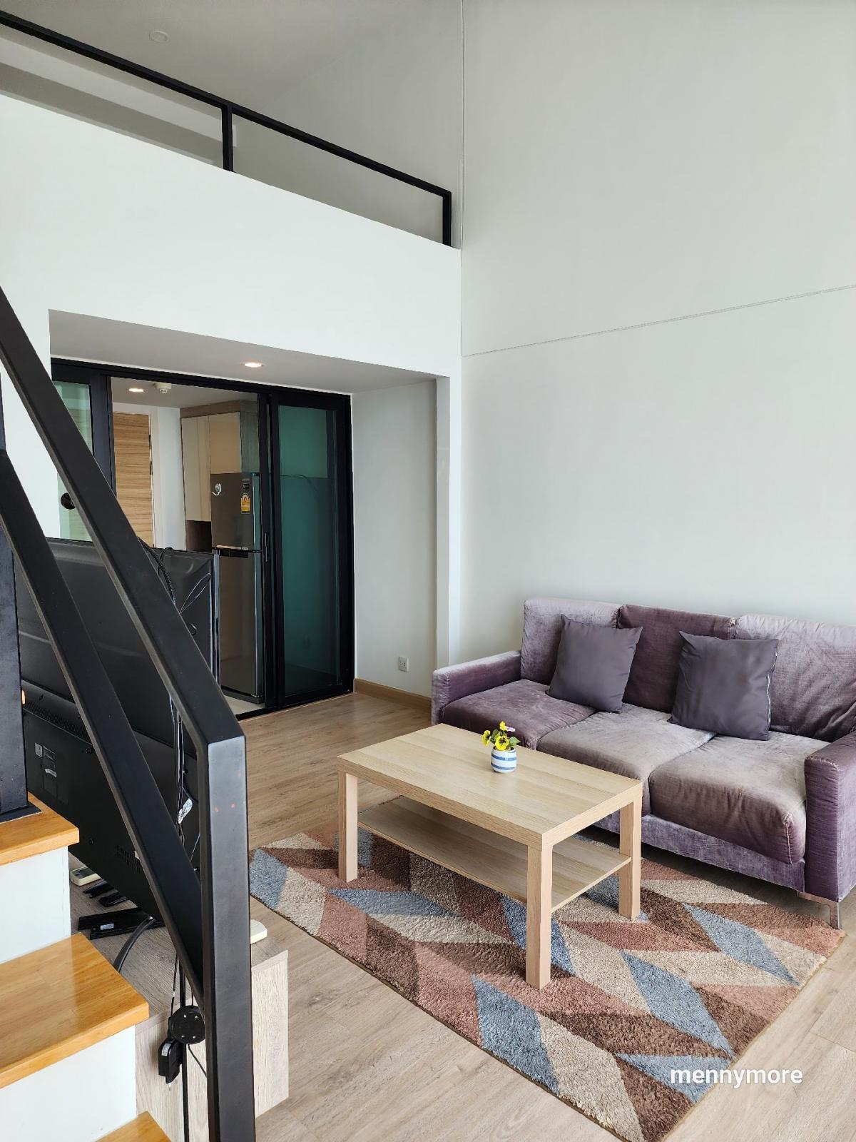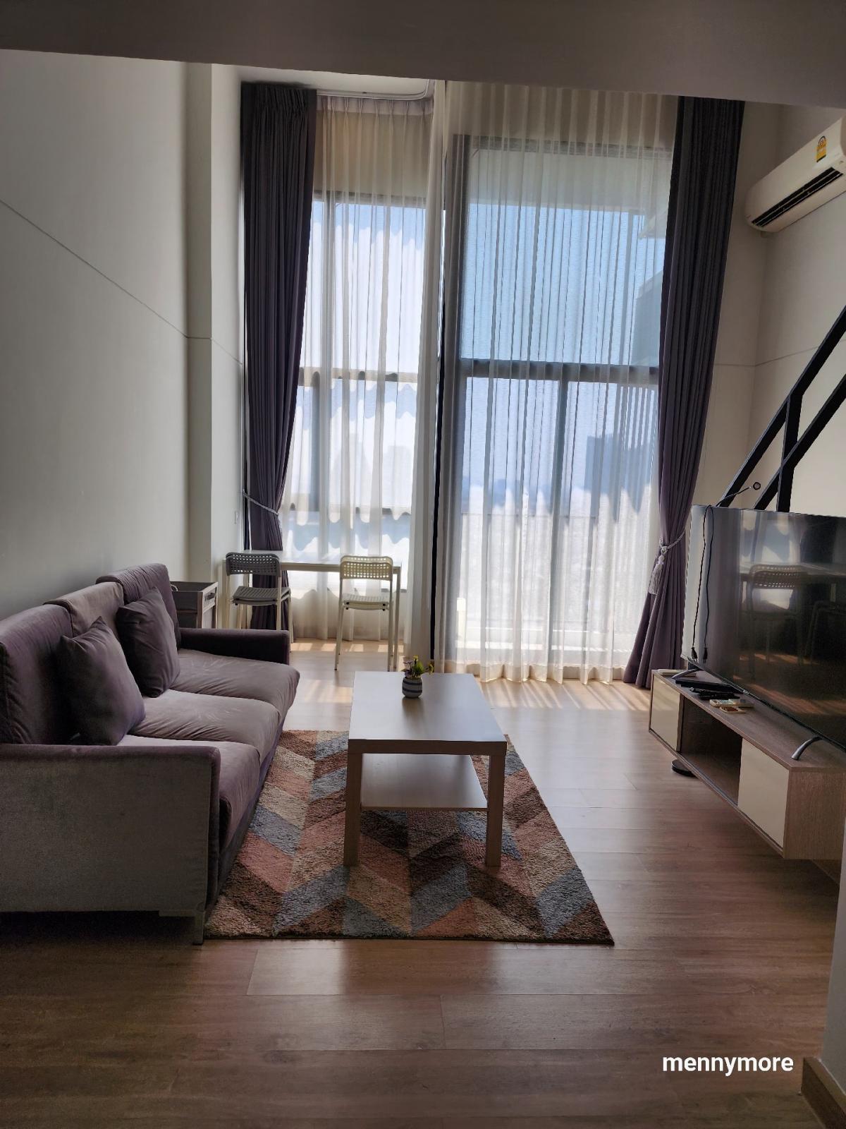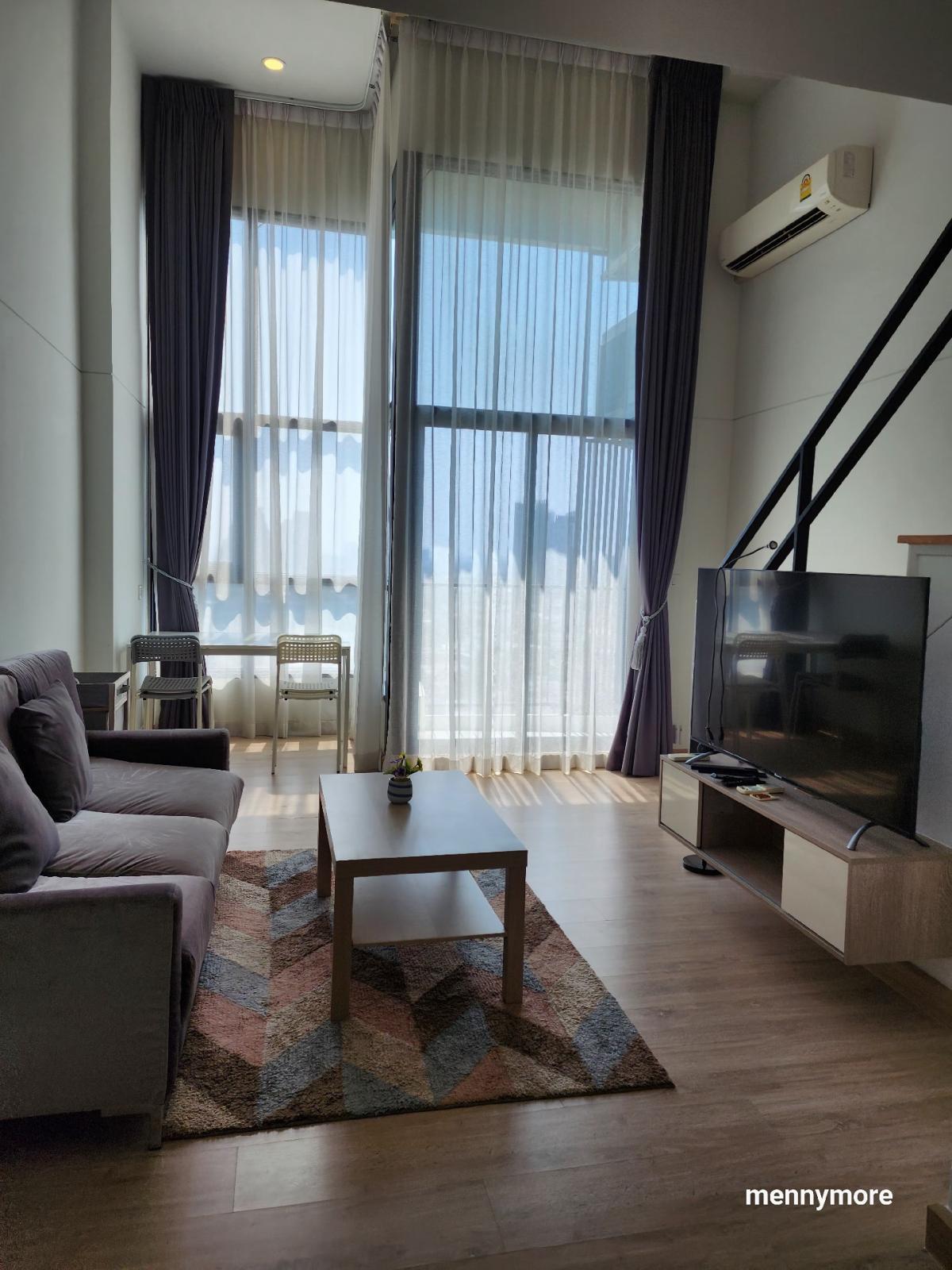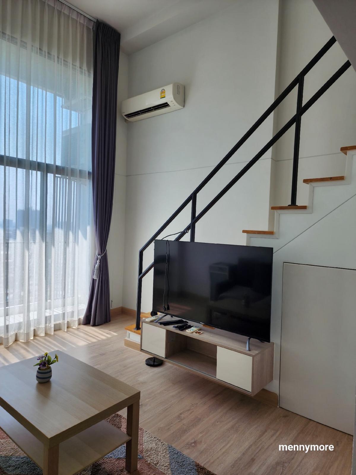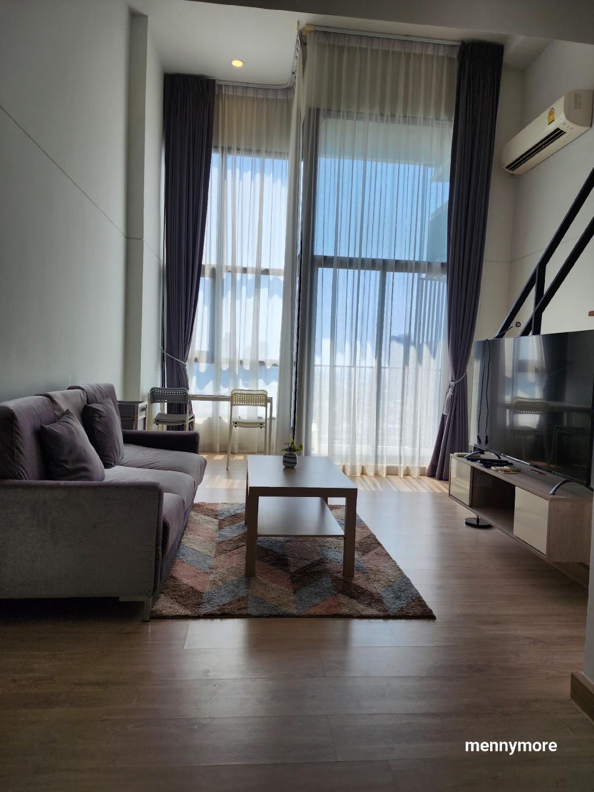 Knightsbridge Duplex Tiwanon #corner room Duplex room, high ceiling, airy, comfortable 17th floor, large room, 44 sq m wide 80 meters from MRT Purple, Ministry of Public Health Station Condo room duplex popular Tiwanon side. Rent for only 13,500 baht Price can be negotiated. In the event that you are satisfied, ready to reserve Code : OW-MA6446