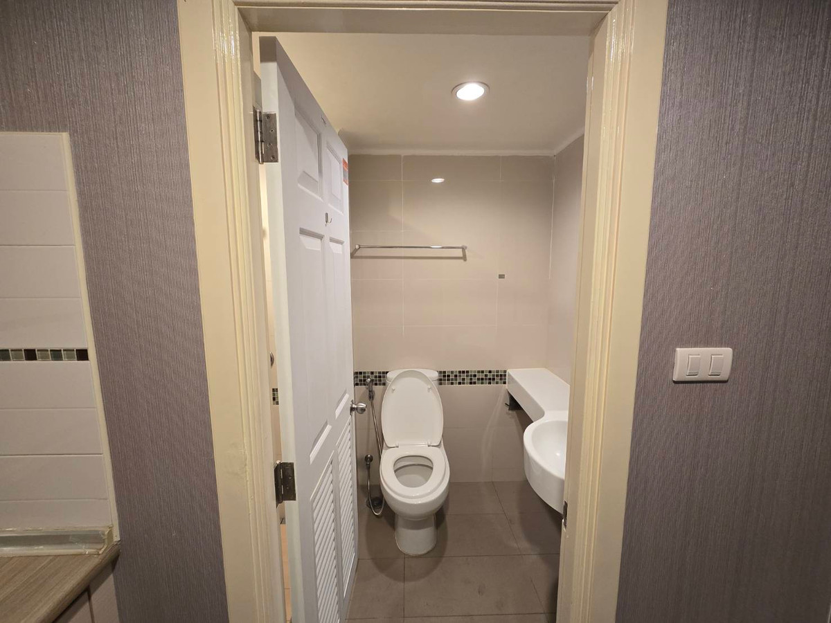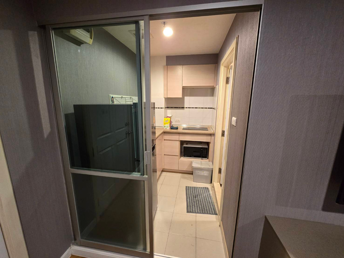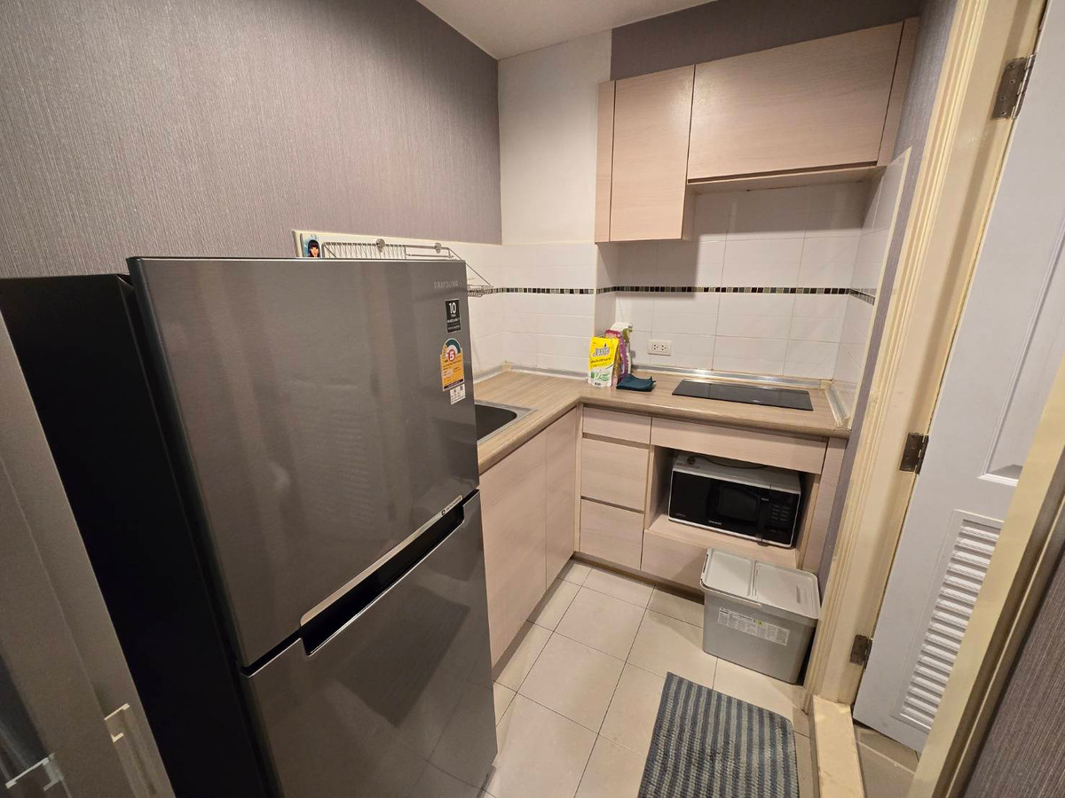 Condo for rent, 32 sqm., beautifully decorated, ready to move in, complete with electrical appliances , TV , refrigerator Microwave, washing machine, 2 air conditioners , 18th floor, Building D , very