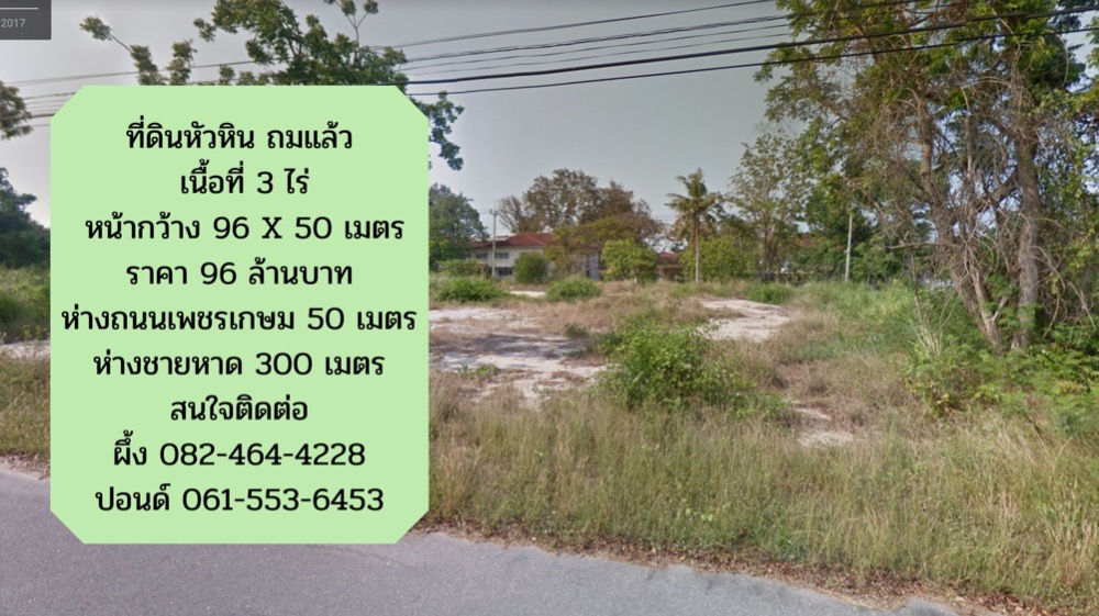 Land for sale in Hua Hin, filled with large plots, beautiful, good location, next to the main road - Area 3 Rai - width 96 meters - 50 meters deep - There is a public way to go into the sea - The road in front of the land is 10 meters wide. - 300 meters from the beach - 50 meters from Petchkasem Road Price 96 million baht contact Bee Contact number Pound Contact number Nearby landmarks - Dusit Thani Hua Hin Hotel - Venezia Hua Hin - Hua Hin Airport - Makro Hua Hin - Avani+ Hua Hin