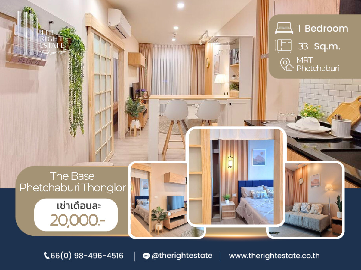 [For Rent] Condo - The Base Phetchaburi-Thonglor - AEY0013 ▪️ Location:MRT Phetchaburi Area:33.25 Sq.m Floor:20 Type:1 Bed 1 Bath Rental fee:20,000 Baht/ Month (Negotiable) ▪️位置:MRT Phetchaburi 面积: 33.25 平方米 楼层:20 层 类型:1 卧室 1 卫生间 租金:20,000 泰铢/月 (可谈) -------------------------------------------------------- ❝ บริการ รับฝาก ขาย-เช่า บ้าน คอนโด อสังหาริมทรัพย์ ❞ Renting and selling service for your own properties 为您提供房产服务 买卖-租房 -------------------------------------------------------- ✒️ สนใจติดต่อนัดชมห้อง : contact us to view more units : 联系方式: Phone no : 098 l 496 l 4516 [Nano : Thai/Eng] Phone no : 086 l 383 l 8689 [Man : Thai/Eng] Line ID. : https://page.line.me/therightestate Whatsapp ID : Contact number WeChat Id : wxid_zl7fk5jvzs6m12 Co-Agent ติดต่อ : https://lin.ee/CPDovxy Facebook : https://www.facebook.com/therightestate/ Website : www.therightestate.co.th Check available units : https://www.therightestate-stock.com/ -------------------------------------------------------- 𝙏𝙝𝙚 𝙍𝙞𝙜𝙝𝙩 𝙀𝙨𝙩𝙖𝙩𝙚, 𝙁𝙞𝙣𝙙 𝙮𝙤𝙪𝙧 𝙧𝙞𝙜𝙝𝙩