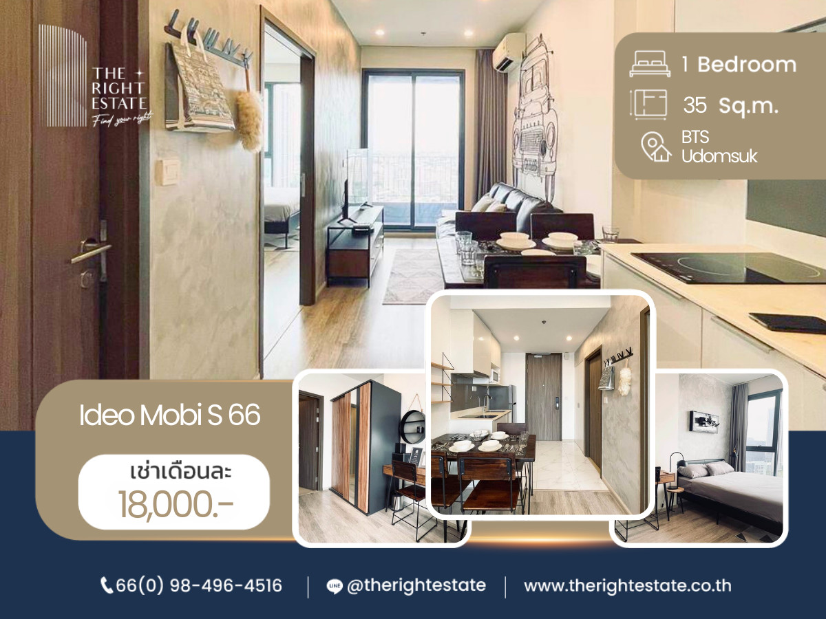 [For Rent] Condo - Ideo Mobi S 66 - ADZ0009 ▪️ Location:BTS Udomsuk Area:35 Sq.m Floor:24 Type:1 Bed 1 Bath Rental fee:18,000 Baht/ Month (Negotiable) ▪️位置:BTS Udomsuk 面积: 35 平方米 楼层:24 层 类型:1 卧室 1 卫生间 租金:18,000 泰铢/月 (可谈) -------------------------------------------------------- ❝ บริการ รับฝาก ขาย-เช่า บ้าน คอนโด อสังหาริมทรัพย์ ❞ Renting and selling service for your own properties 为您提供房产服务 买卖-租房 -------------------------------------------------------- ✒️ สนใจติดต่อนัดชมห้อง : contact us to view more units : 联系方式: Phone no : 098 l 496 l 4516 [Nano : Thai/Eng] Phone no : 086 l 383 l 8689 [Man : Thai/Eng] Line ID. : https://page.line.me/therightestate Whatsapp ID : Contact number WeChat Id : wxid_zl7fk5jvzs6m12 Co-Agent ติดต่อ : https://lin.ee/CPDovxy Facebook : https://www.facebook.com/therightestate/ Website : www.therightestate.co.th Check available units : https://www.therightestate-stock.com/ -------------------------------------------------------- 𝙏𝙝𝙚 𝙍𝙞𝙜𝙝𝙩 𝙀𝙨𝙩𝙖𝙩𝙚, 𝙁𝙞𝙣𝙙 𝙮𝙤𝙪𝙧 𝙧𝙞𝙜𝙝𝙩